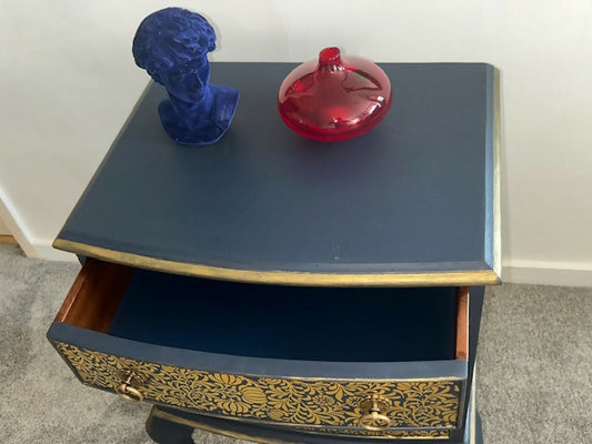Restyled dark blue chest of three drawers