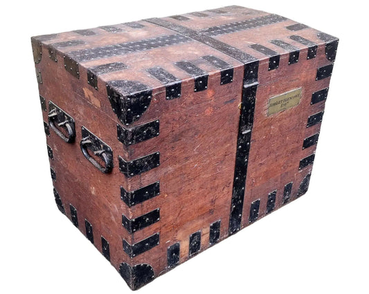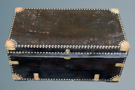 19th Century Leather and Brass Mounted Military Campaign Chest