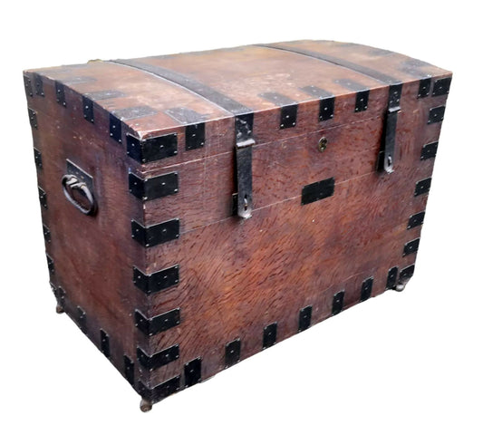 19th Century Oak & Metal Banded Silver Chest