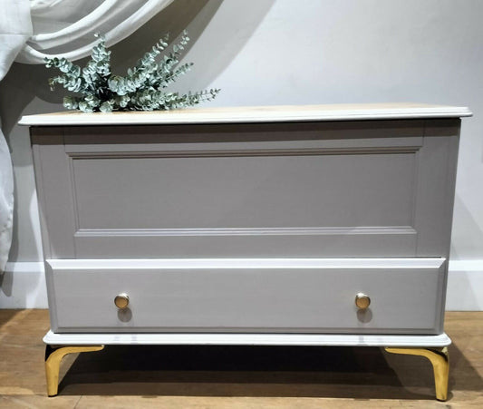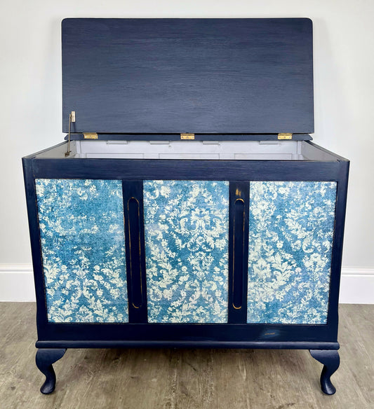 *now sold* Elegant hand painted vintage blue chest of drawers