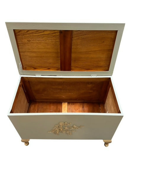 Hand Painted Blanket Box – Vintage Ottoman Trunk – Rustic Wooden Chest – Shabby Chic Storage Box