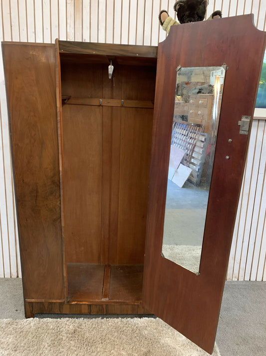 Vintage walnut-veneered wardrobe in Art Deco style, featuring a single door