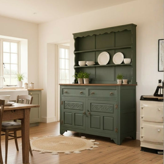 The Jaycee Oak Kitchen Dresser - Deep Forest Green Farmhouse Classic