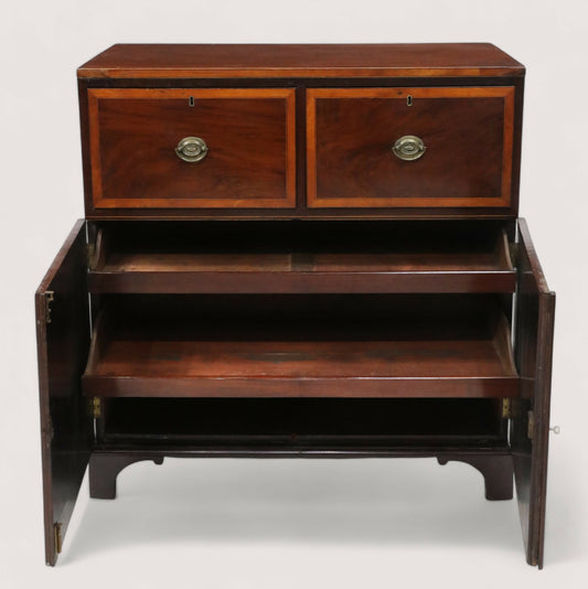 Antique Low Georgian Mahogany Linen Press 2 Drawers FREE UK Delivery. SBR9685/1810D