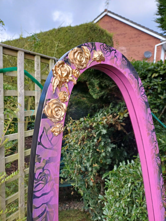 Upcycled Black and Gold Freestanding Mirror with Flamingo Design