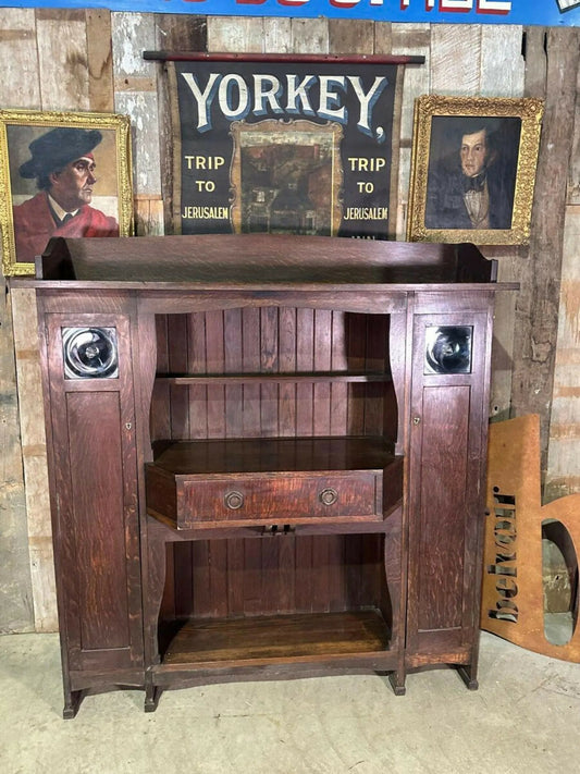 Antique Oak Breakfront Bookcase Cupboard Hathaway Dresser By Leonard Wyburd For Liberty And Co, C1900