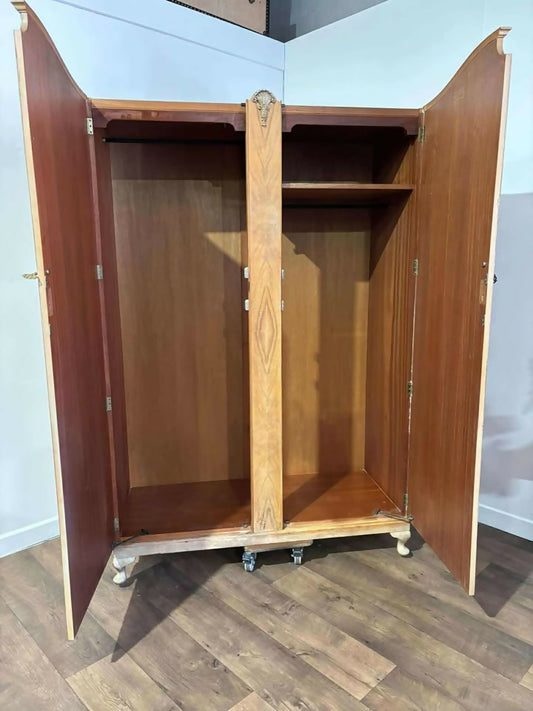 Vintage French Shabby Chic Louis Armoire Wardrobe | Carved 4 Door Large Closet | Cupboard with Shelves & Hanging Space | Lot 4159