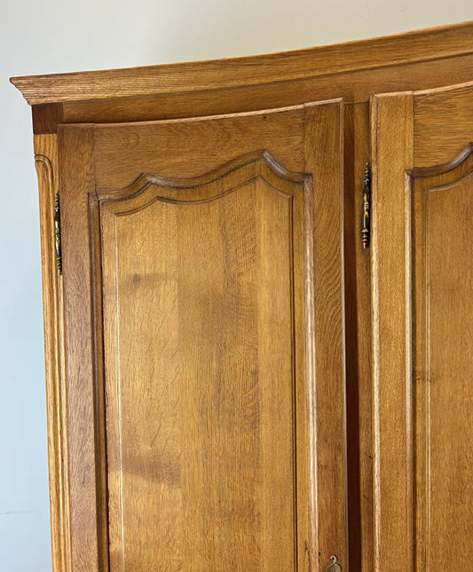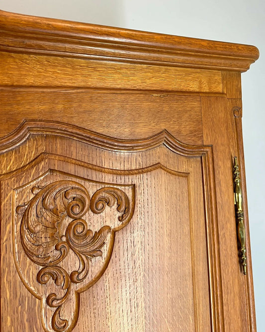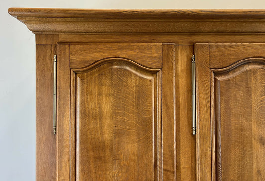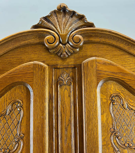 Vintage French Louis Oak Armoire Wardrobe | Carved 4 Door Large Oak Closet | Cupboard with Shelves & Hanging Space | Lot 4172