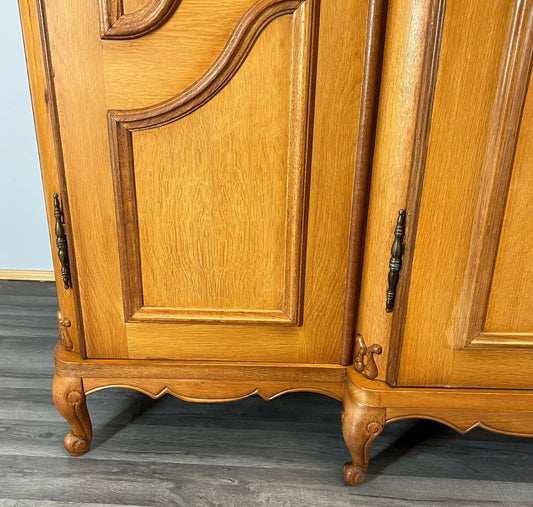 Vintage French Wardrobe Armoire 4 Door Oak Louis XV Style Carved Solid Wood Closet Cupboard Bedroom Storage LOT 4154