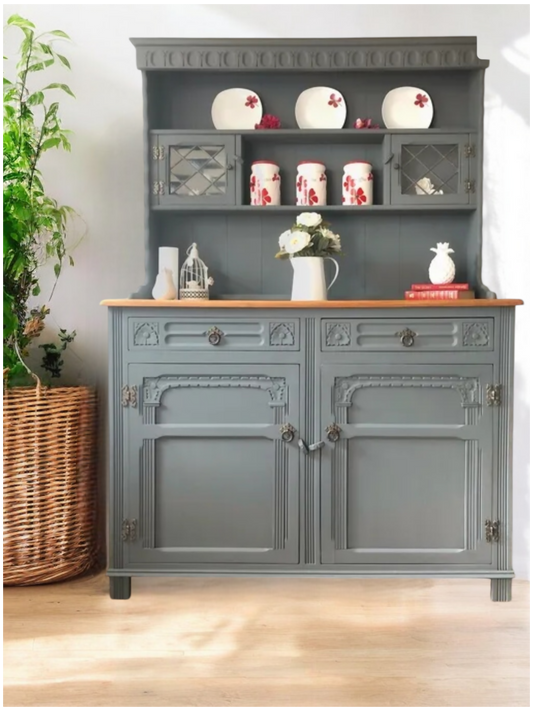 Large Solid Oak Dresser painted Black With Oak Pegs And Storage