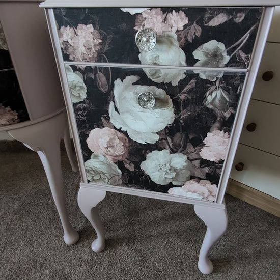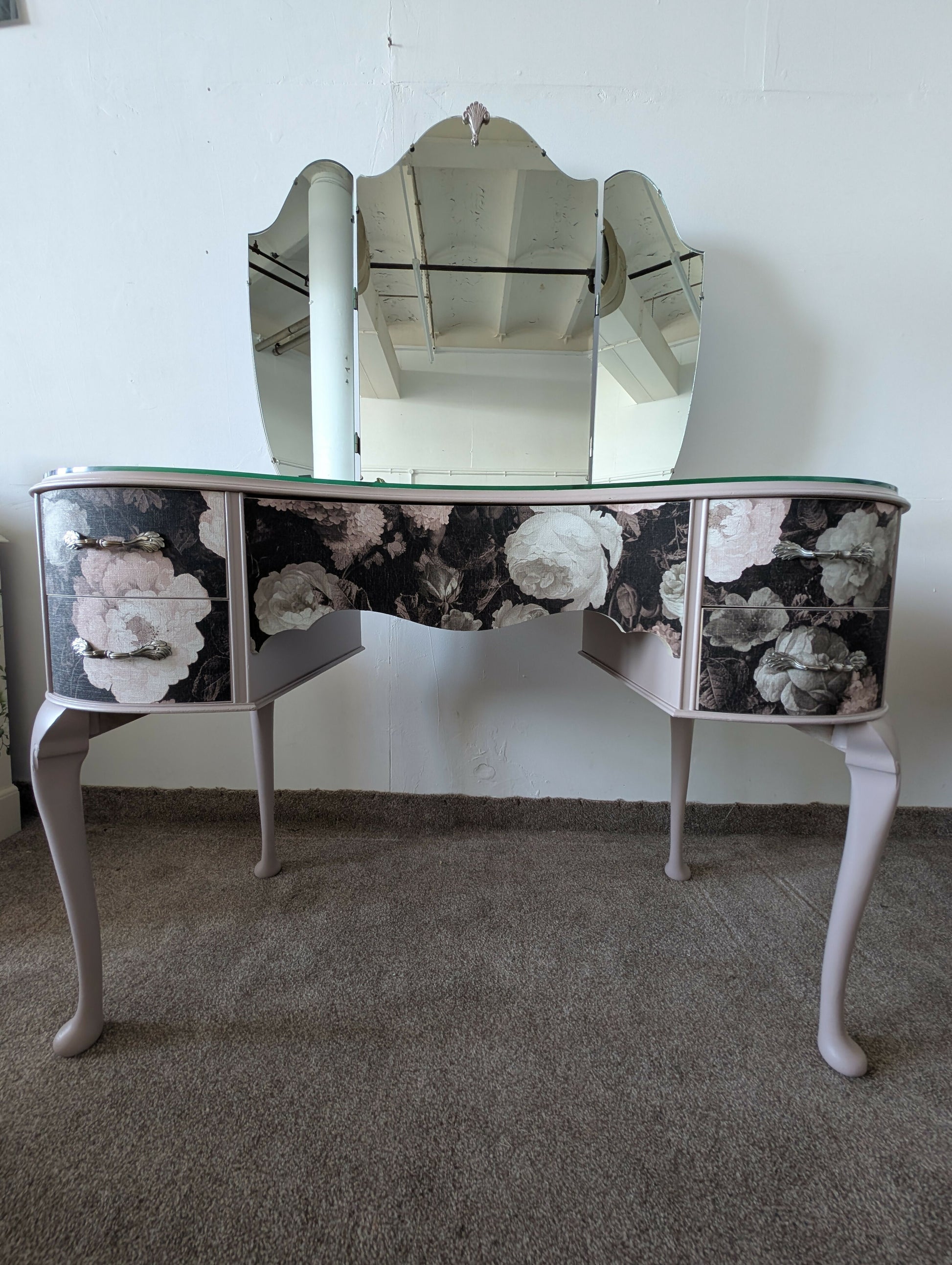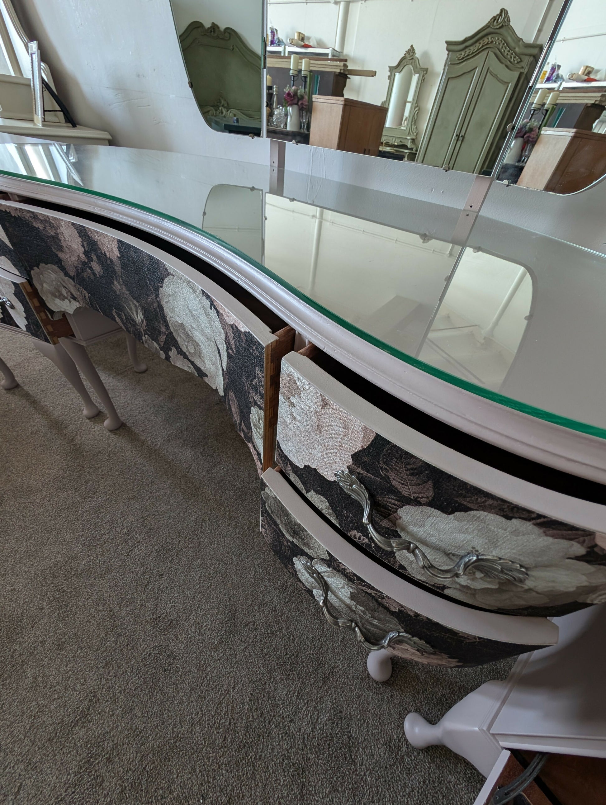 1940s Wrighton Dressing Table & Matching Bedside Cabinets | Vintage Painted Bedroom Set with Triple Mirrors and Glass Top