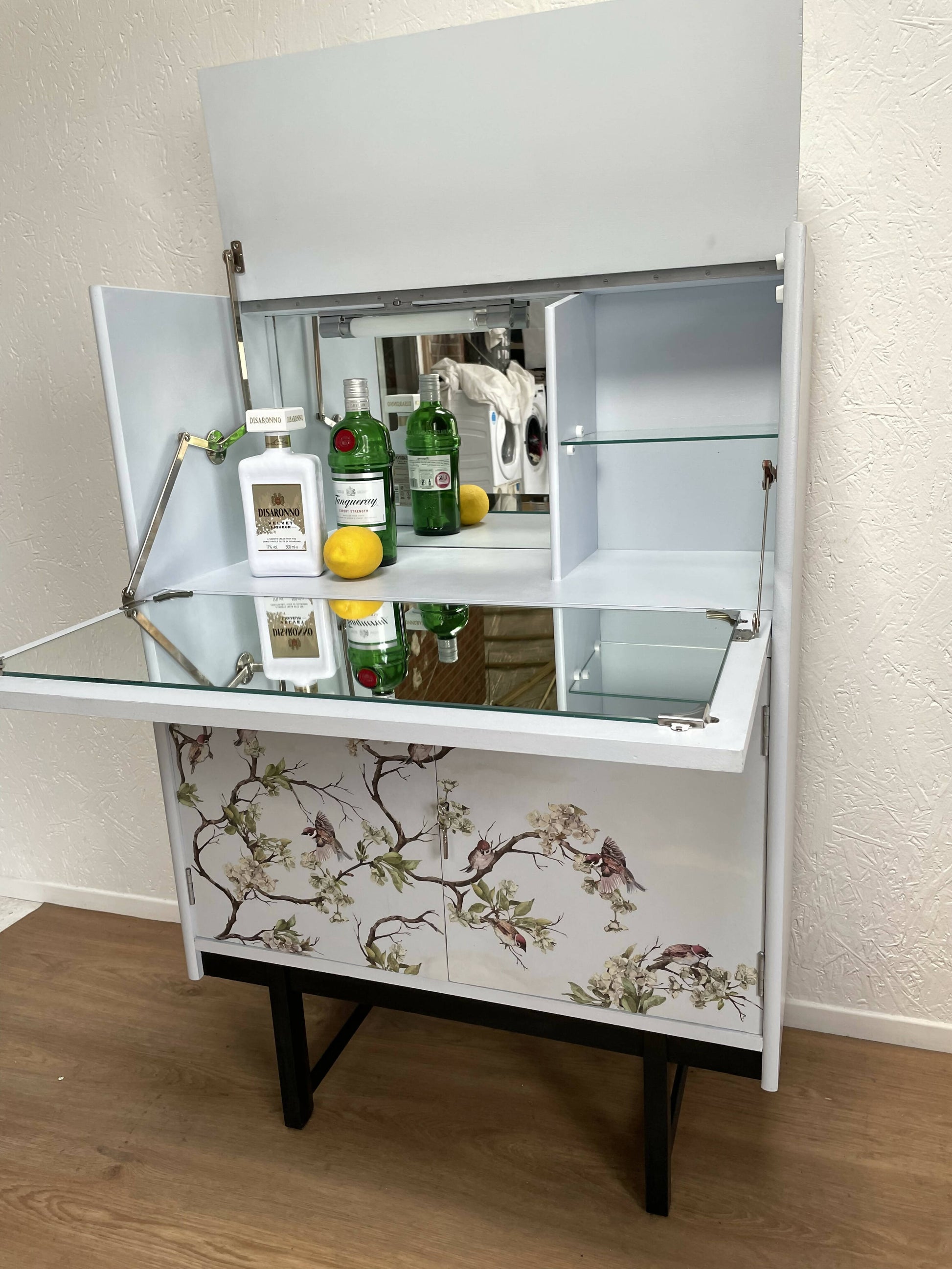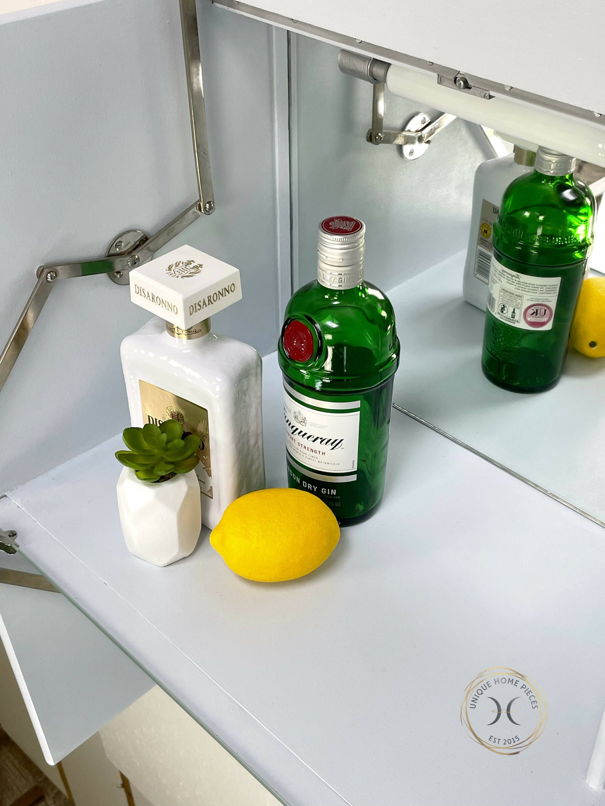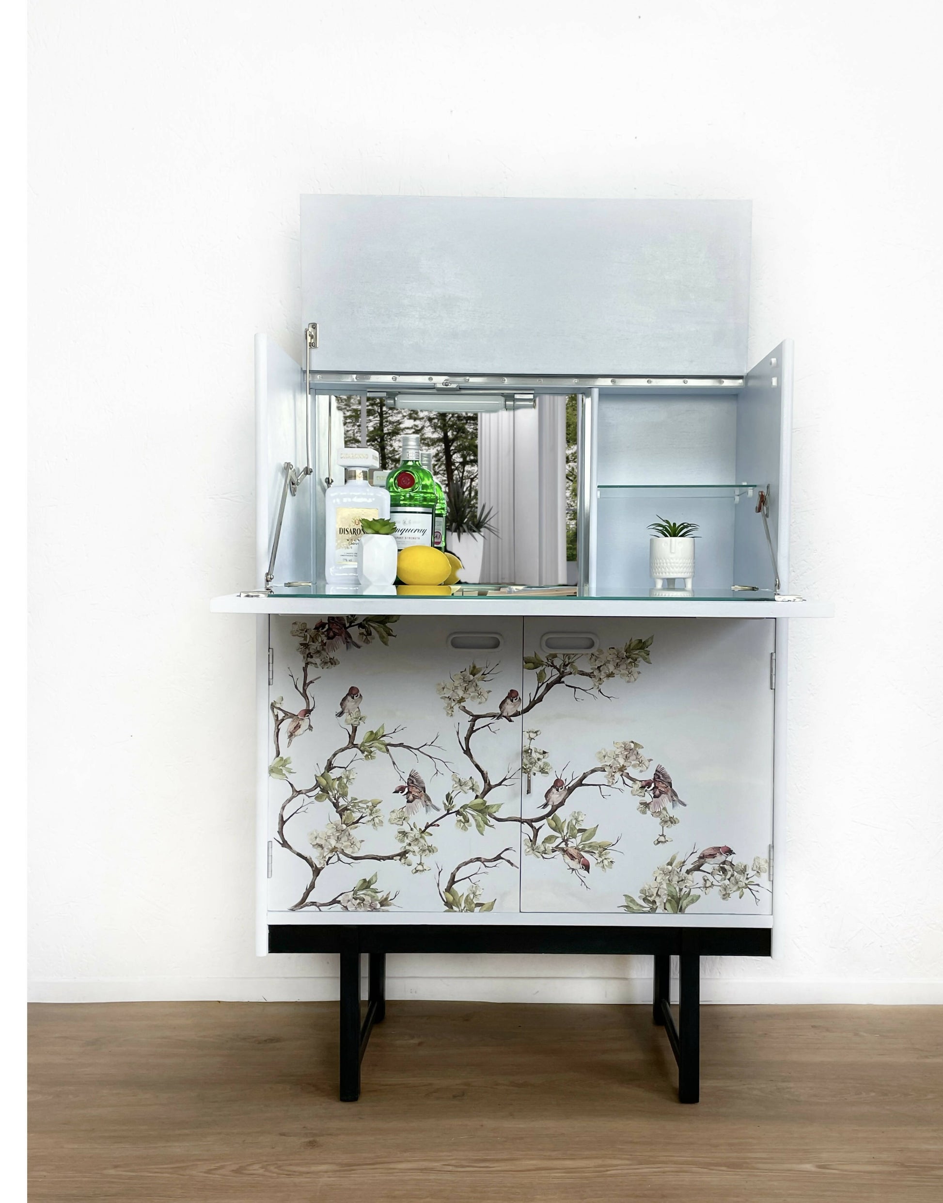1960s MCM Teak Light Blue Turnidge Drinks/Cocktail Cabinet