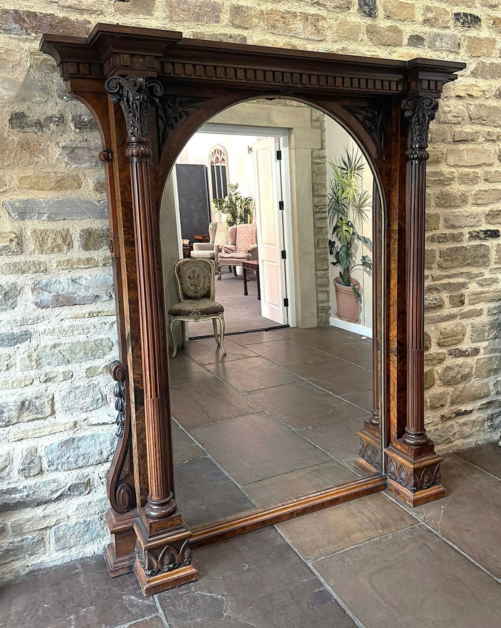 A Good Large Victorian Carved and Figured Walnut Overmantel Mirror