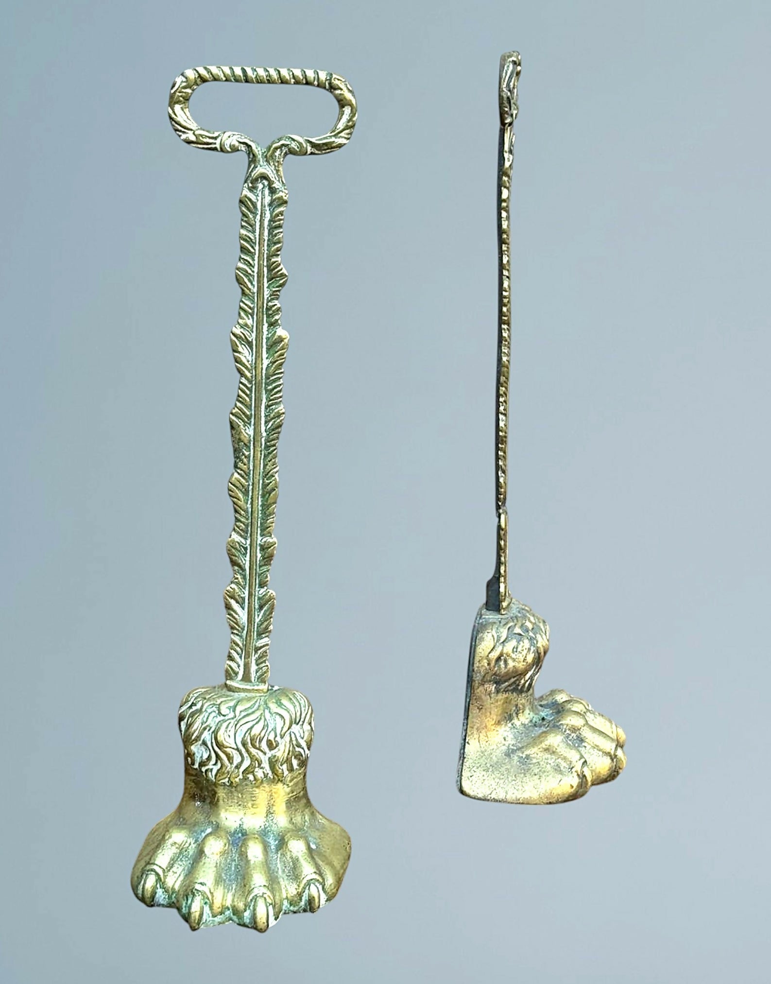 A Near Pair of 19th Century Brass Lion Paw Door Porters