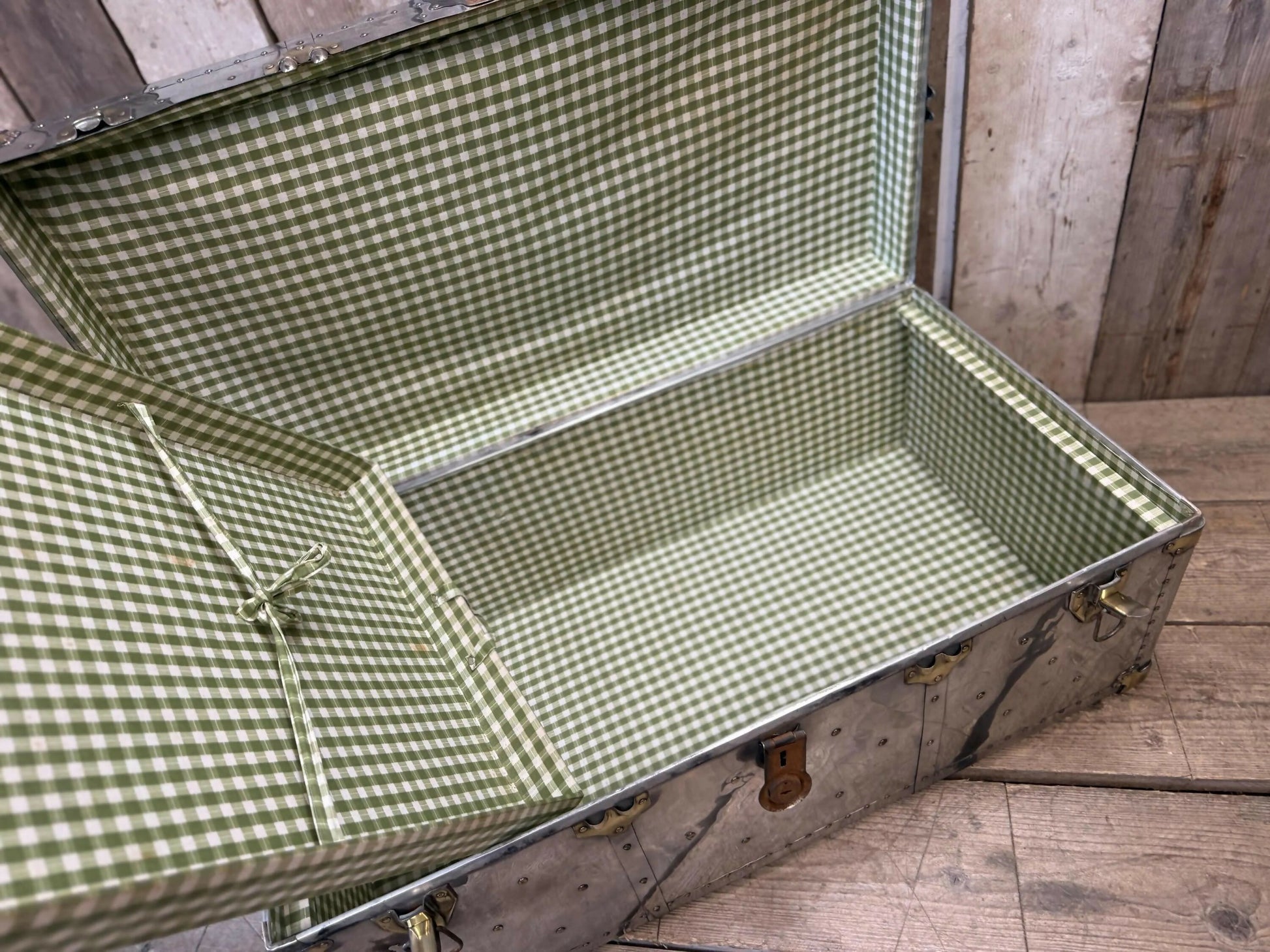 Aluminium and brass vintage travel trunk