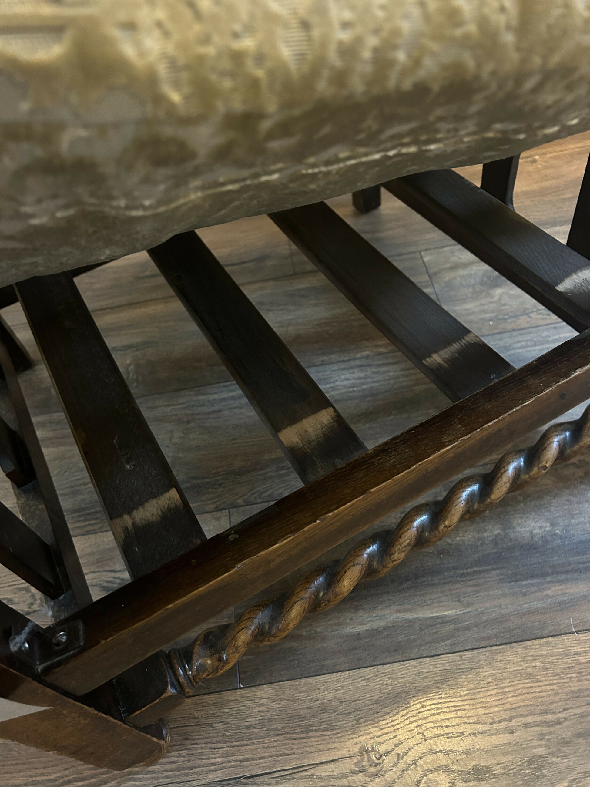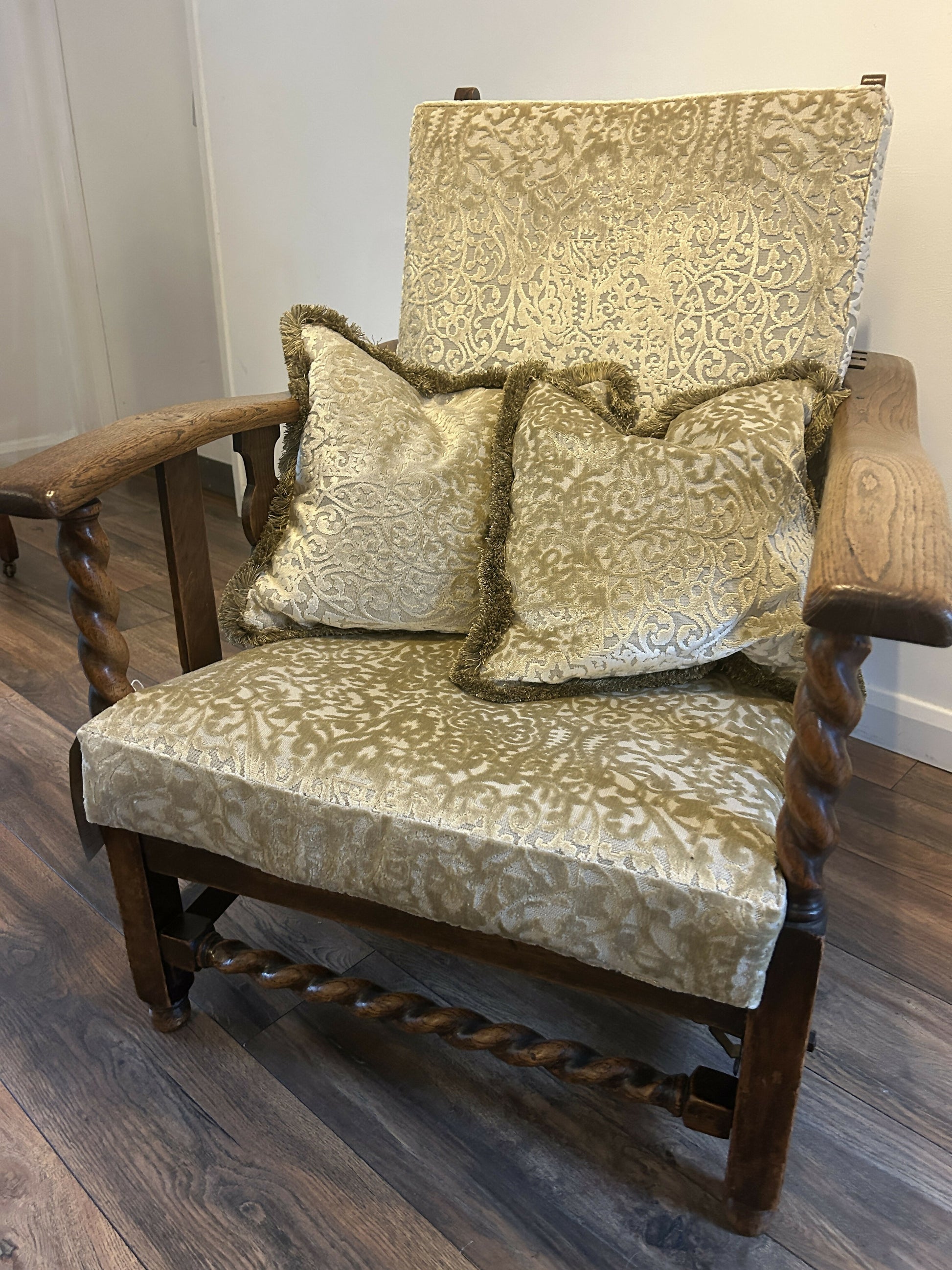 A beautiful example of early 20th-century craftsmanship, this solid oak reclining gentleman’s chair dates to around 1910. Featuring elegant barley twist supports, wide armrests, and a sturdy frame, it captures the timeless charm of Edwardian furniture design.