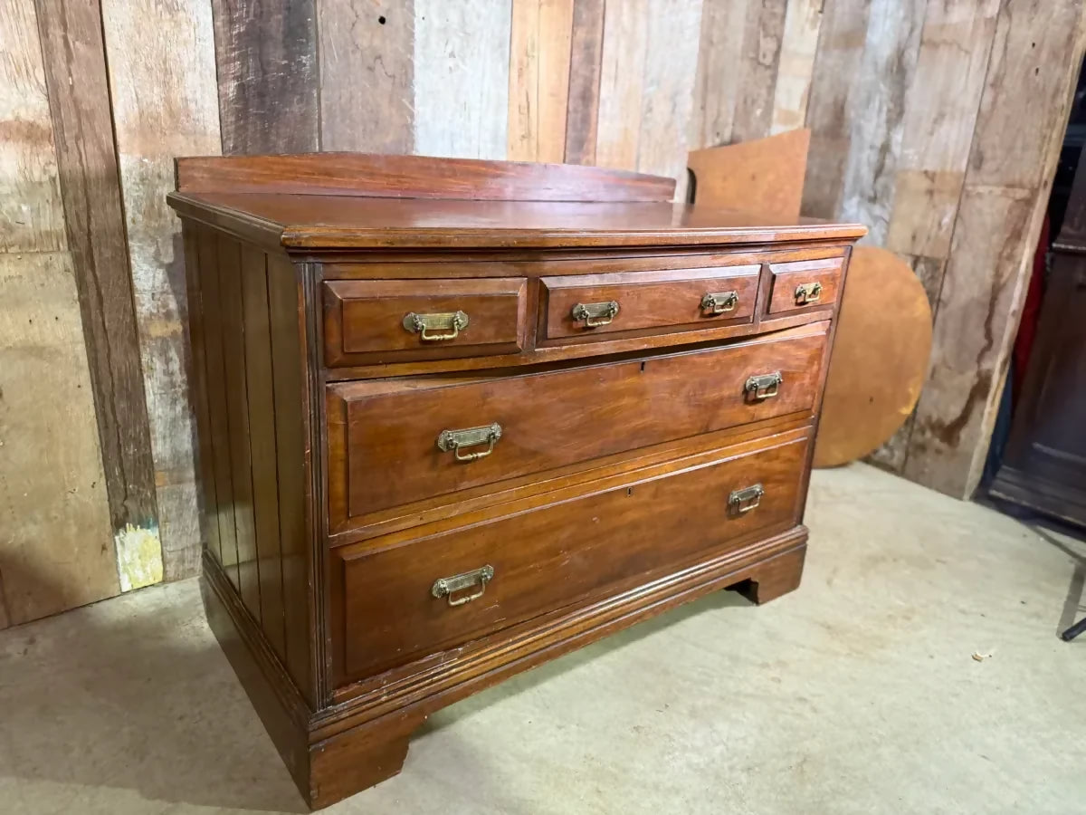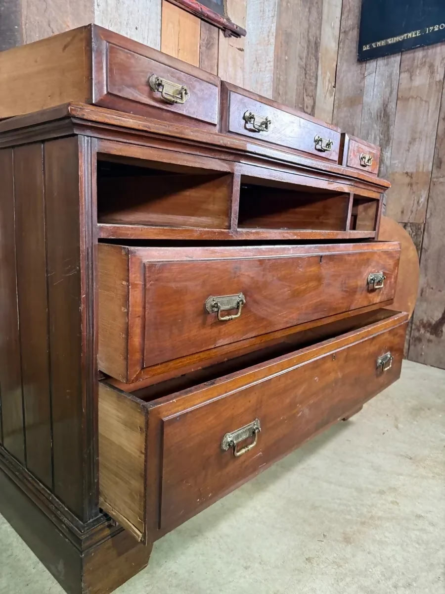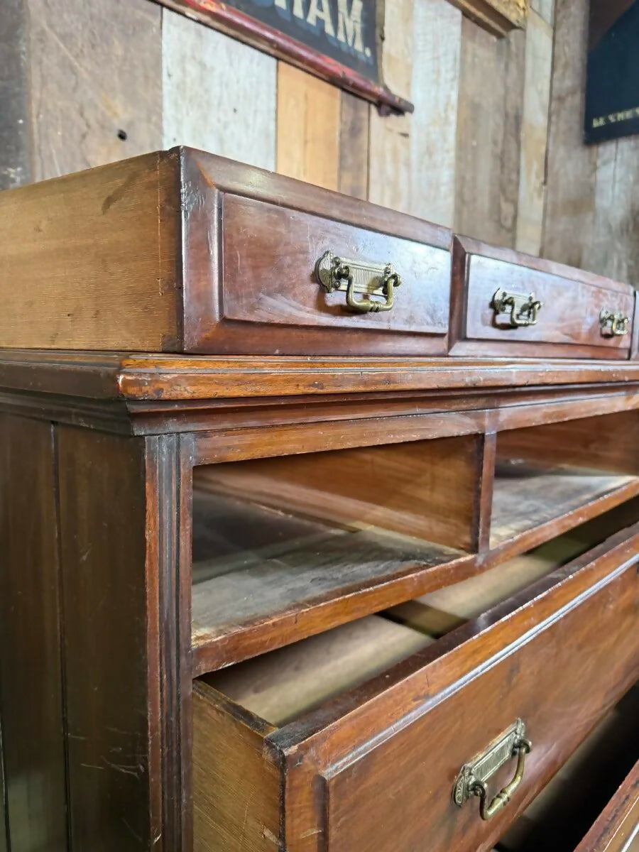 Antique Edwardian Mahogany Breakfront Dressing Three over Two Chest of Drawers, c 1900