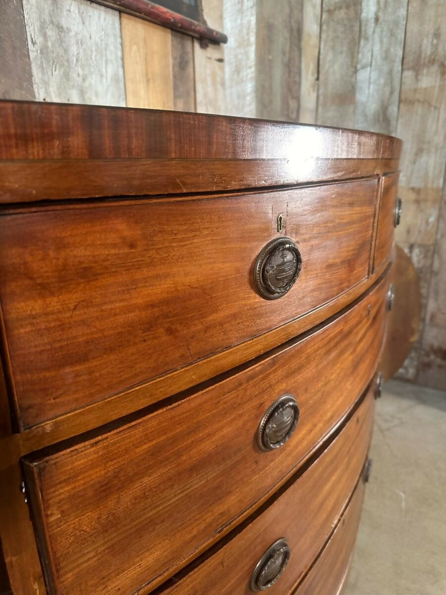 Antique Mid Victorian Bow Front Chest of Five Drawers, c 1840