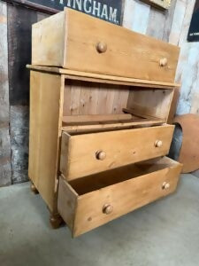 Antique Mid Victorian Pine Three Drawer Chest of Drawers Dresser, c 1860