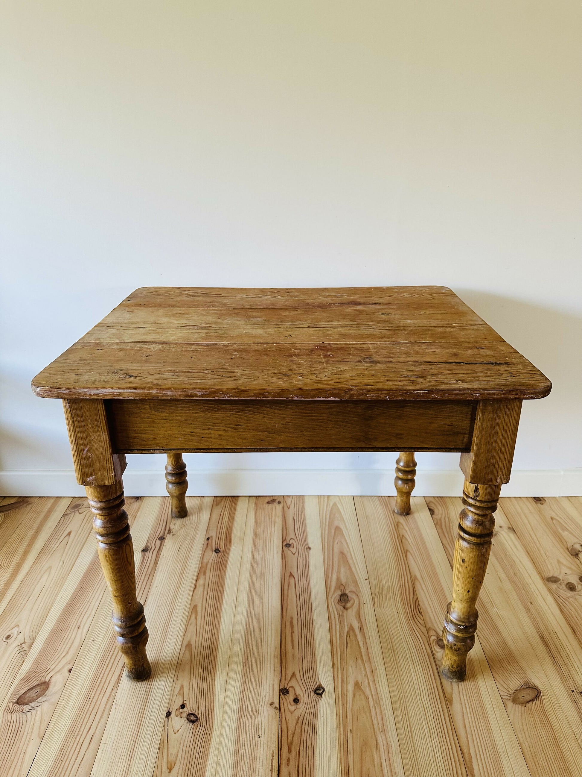 This lovely and very rustic compact table is showing lots of natural patina and use from over the many, many years