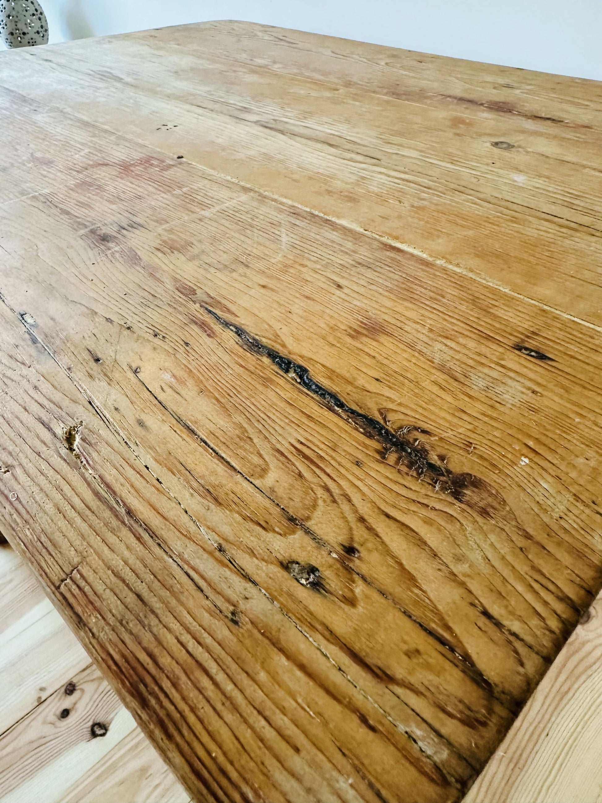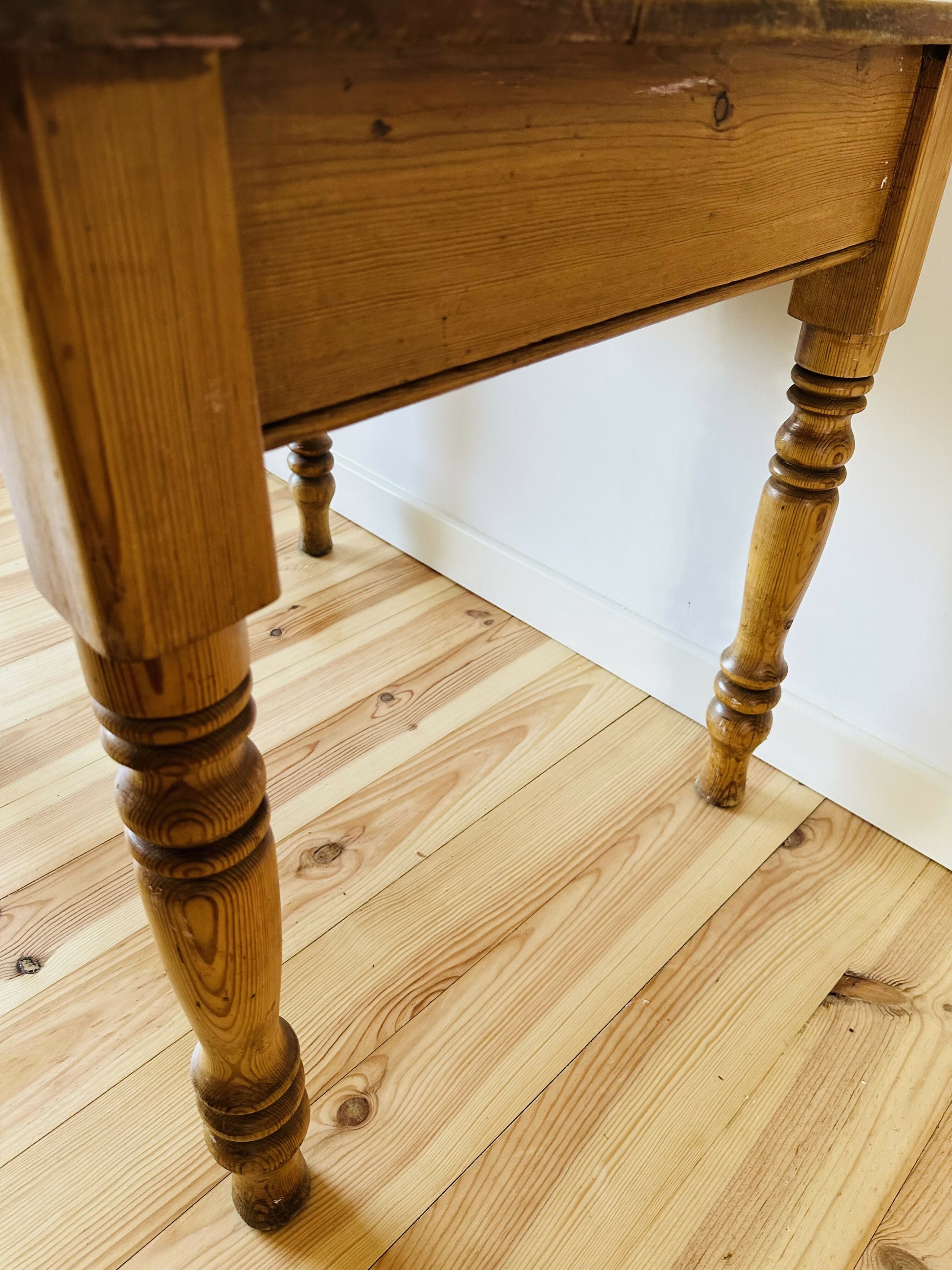 Antique Pine Table Scrub Top Rustic Kitchen Stripped Dining Table
