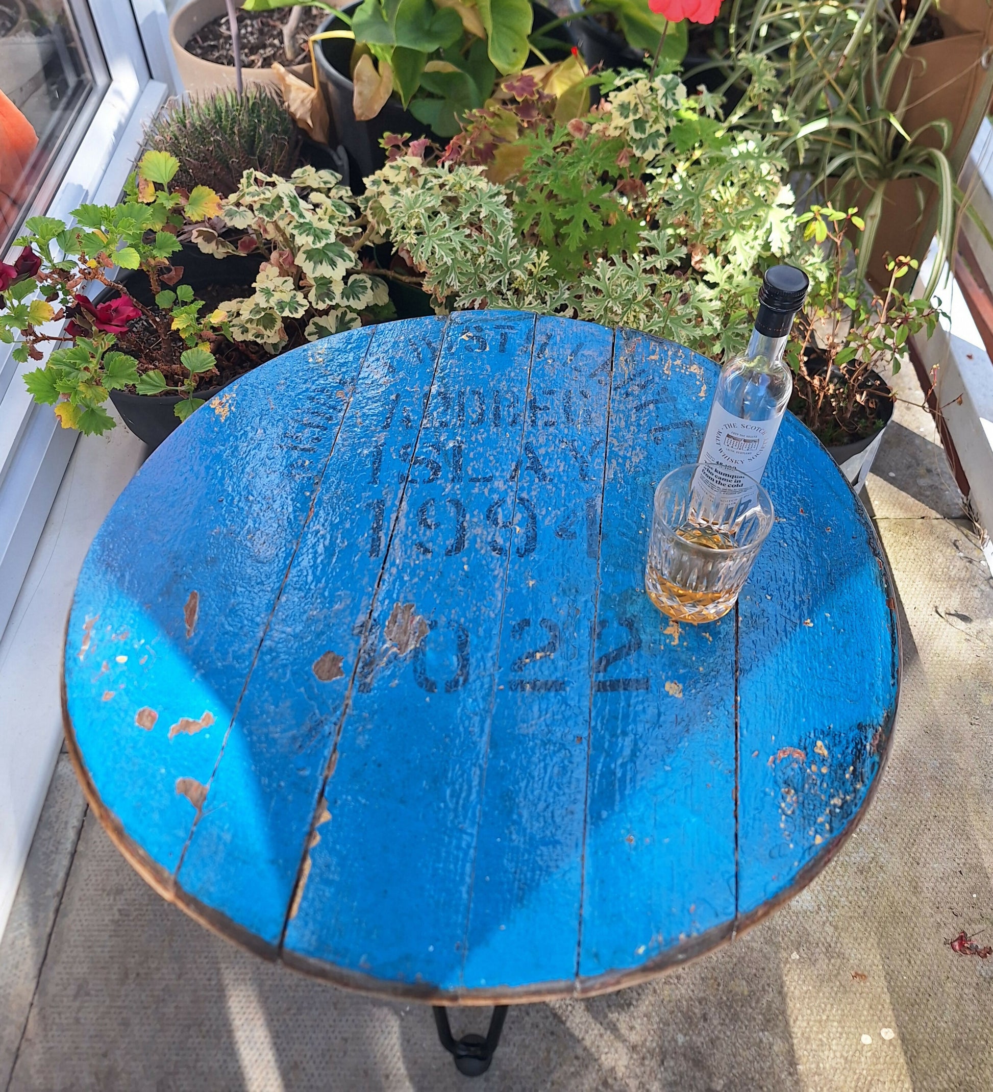 This table top bears the details of its final stop at Ardbeg Distillery in Islay, as well as the multiple layers of paint applied each time the barrel was refilled with whisky, before being laid down to mature. Barrels interiors are charred to add flavour and colour to the spirit, but don’t worry, this has been brushed back and sealed with gloss varnish to protect (although I’ve left a centre point bare so you can relish the smell of the angel’s share).