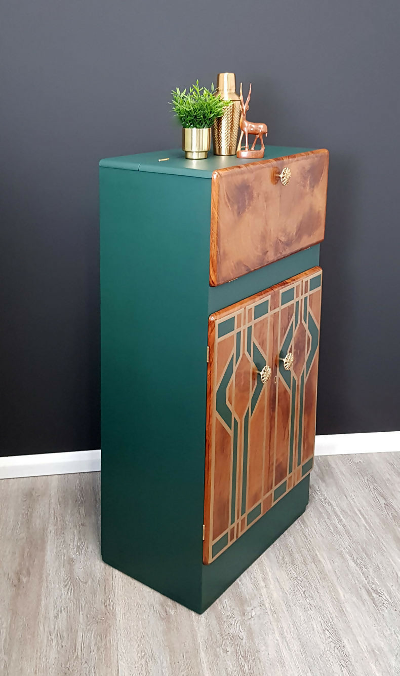 Art Deco Cocktail Cabinet, Teal Green Drinks Cabinet.