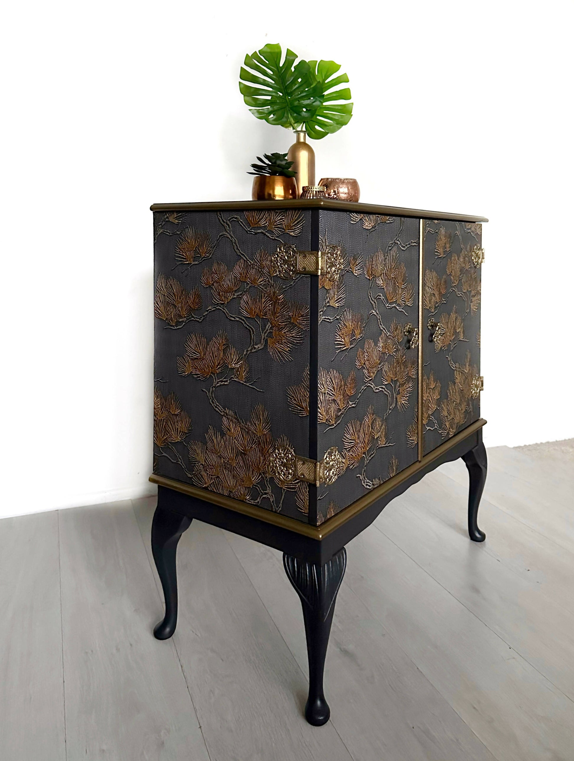 This piece began life, we think, as a TV unit. But just look at it now! Stunningly reimagined and restyled into a drinks cabinet that will grace any home.