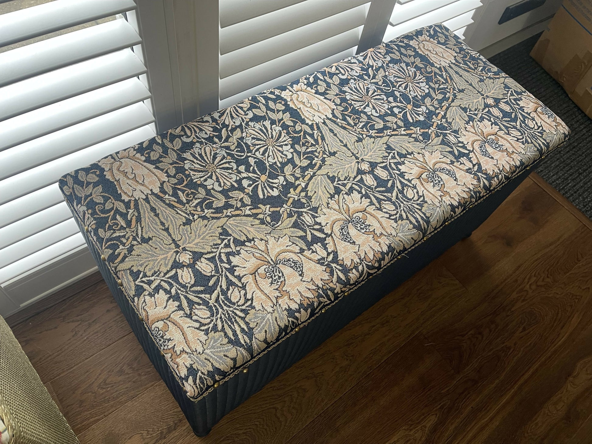 Blue and gold refurbished Lloyd loom mid century vintage Ottoman