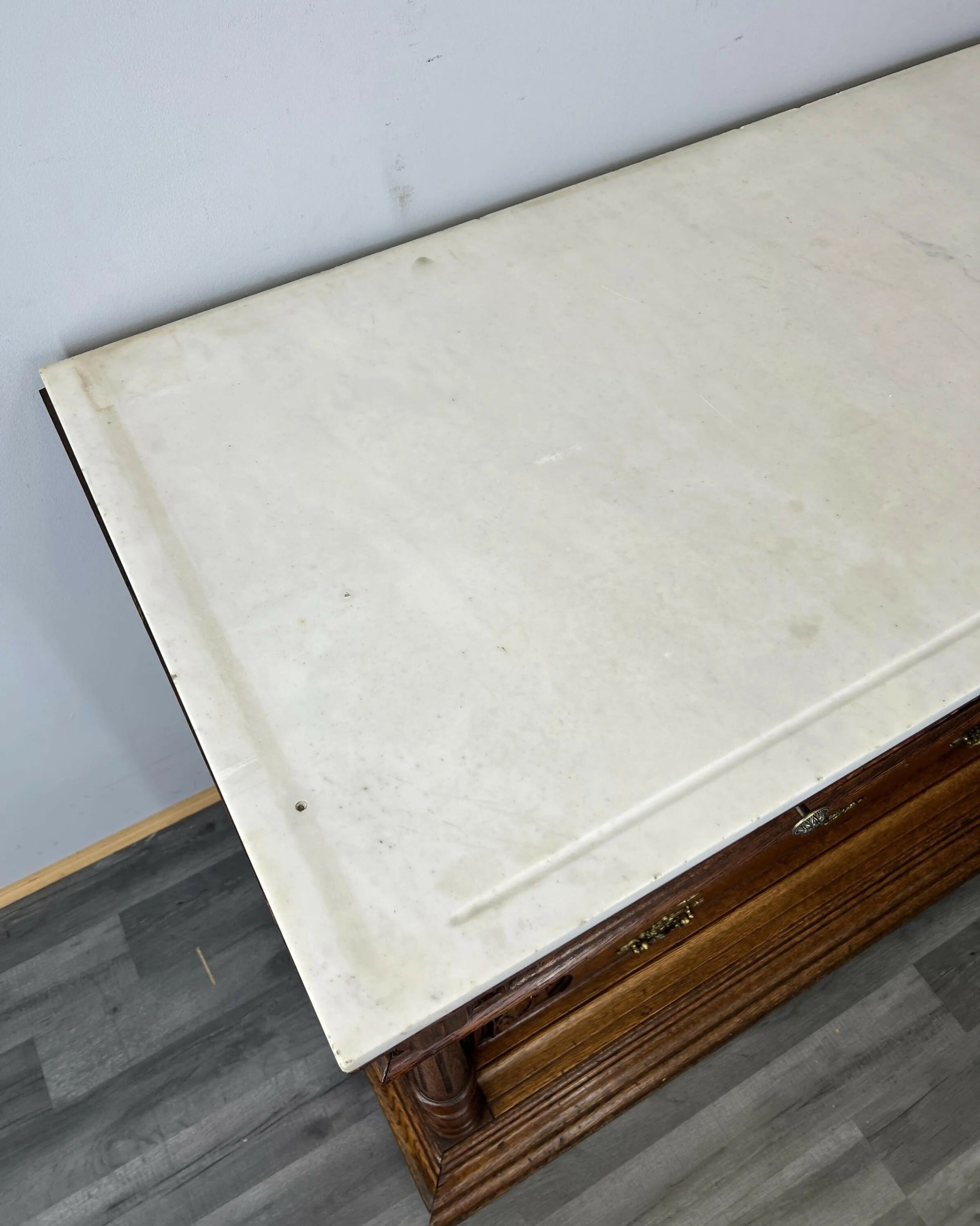 Chest of Drawers Antique French Style Marble Top Oak Carved Cabinet LOT 4808