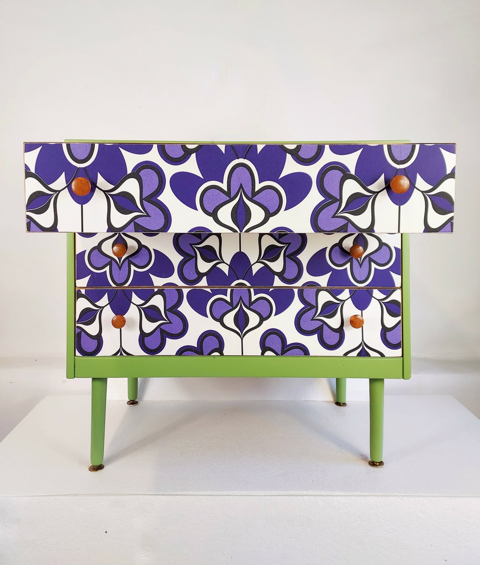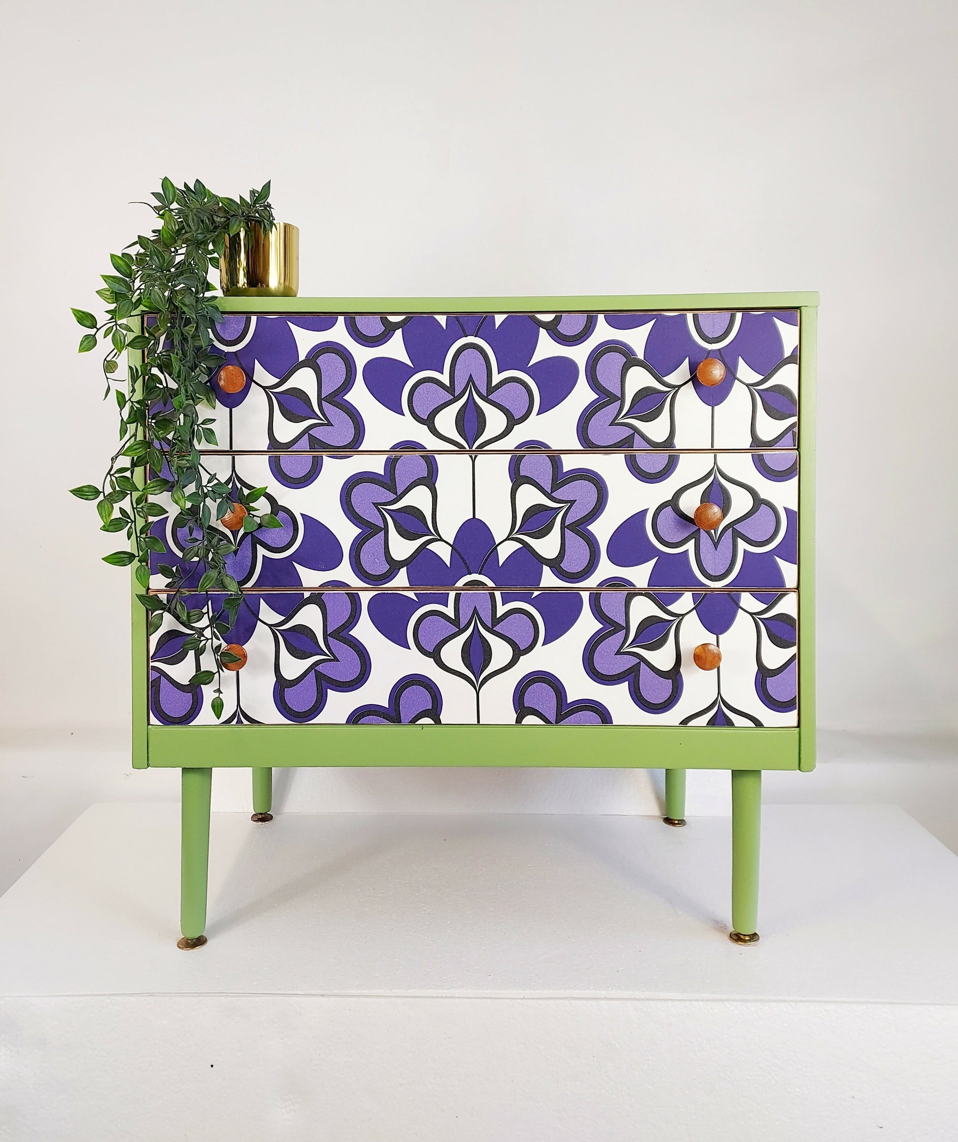 Chest Of Drawers In Yeabridge Green And Retro Pattern