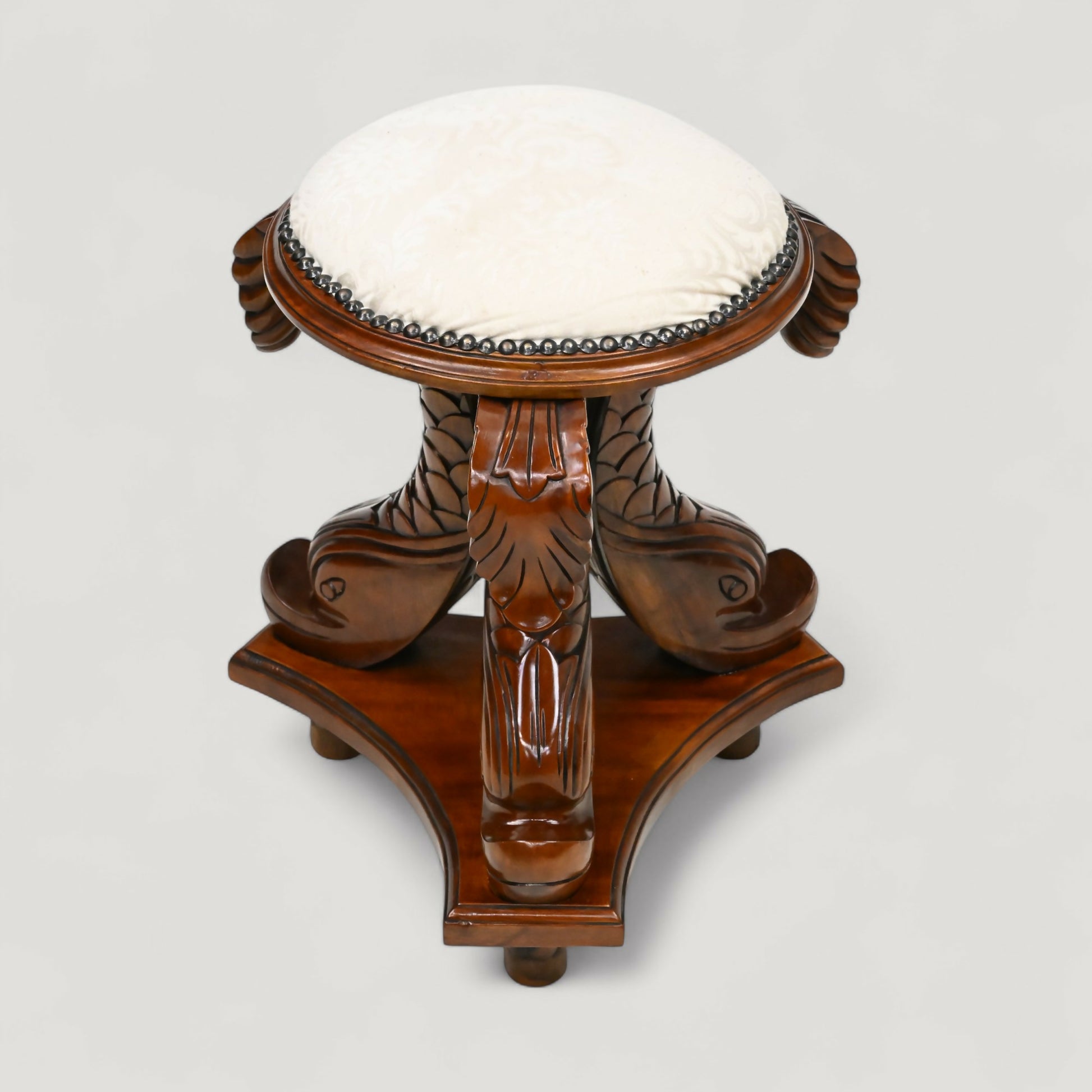 Chinese Dressing Stool Fish Carvings Studded Upholstered Seat FREE UK Delivery. SBR10753/2307E