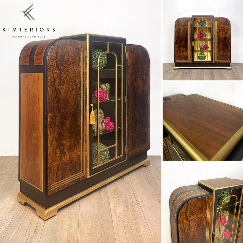 Curvy Black and Gold Art Deco Style Cocktail- drinks- Display Cabinet - made to order
