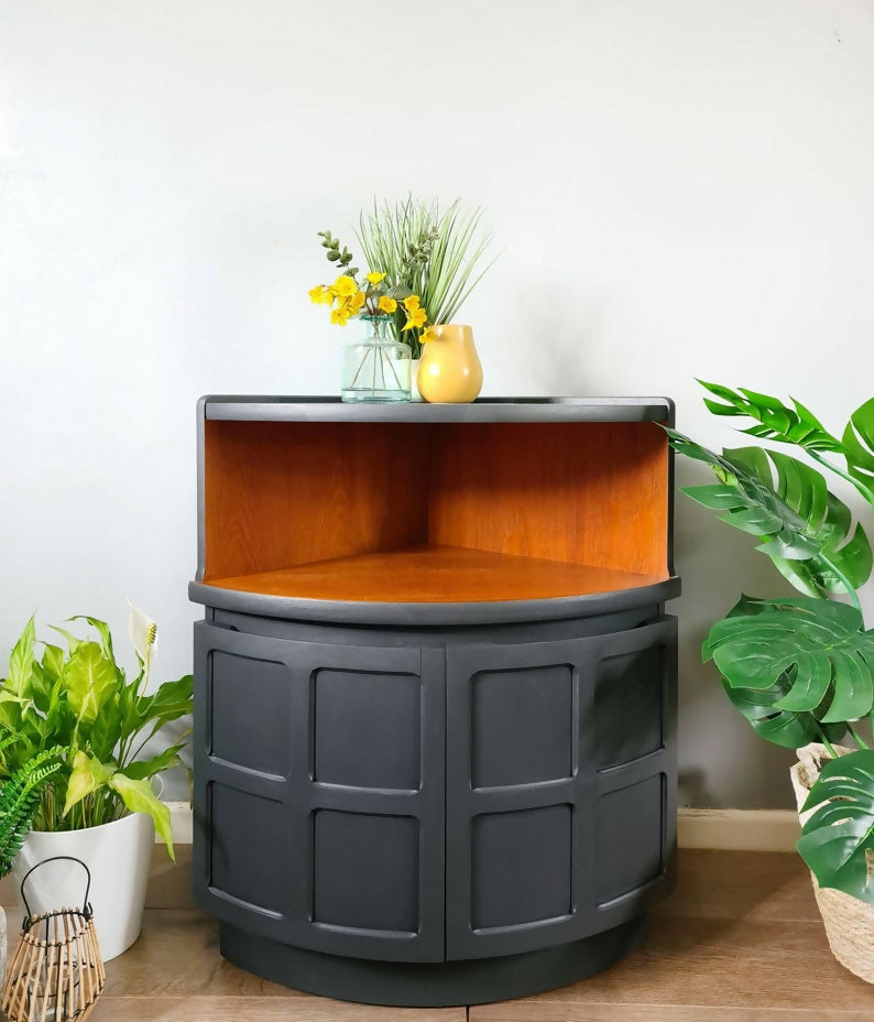 Dark Grey Mid century modern nathan drinks cabinet ,teak corner unit, gin bar,retro,vintage, teak furniture, grey,modern