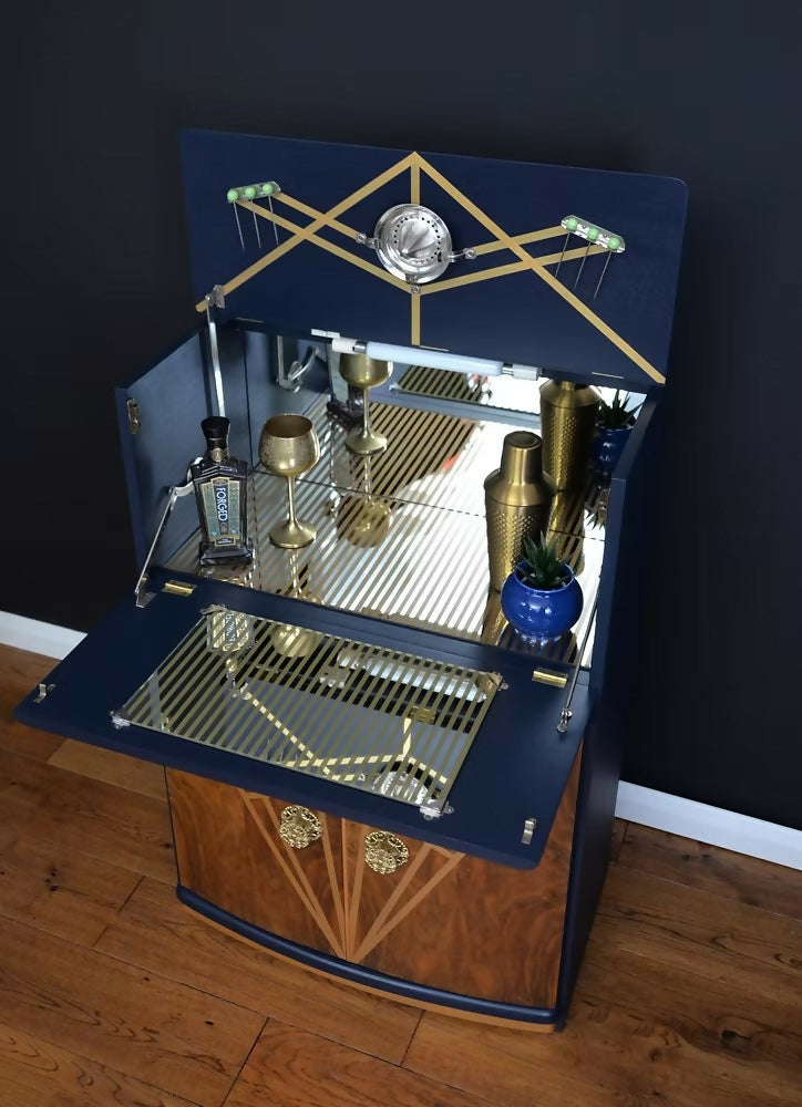 This compact Art Deco inspired cocktail cabinet is sure to add that bling factor to any modern or vintage home.