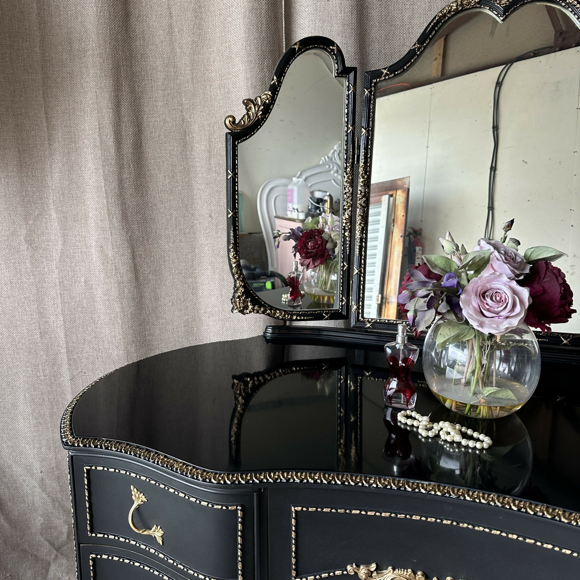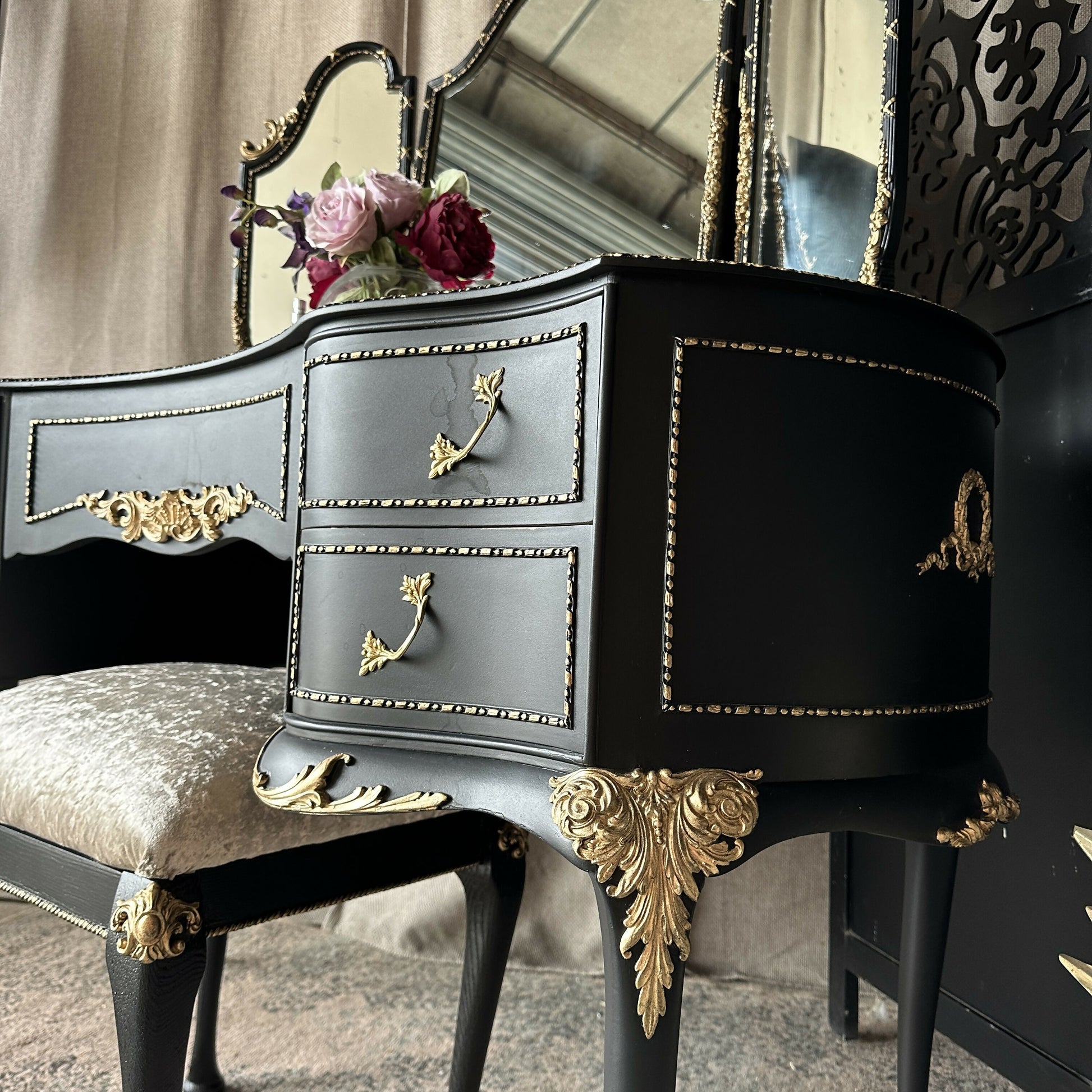 High Gloss Dressing Table Black and Gold Olympus Dressing Table