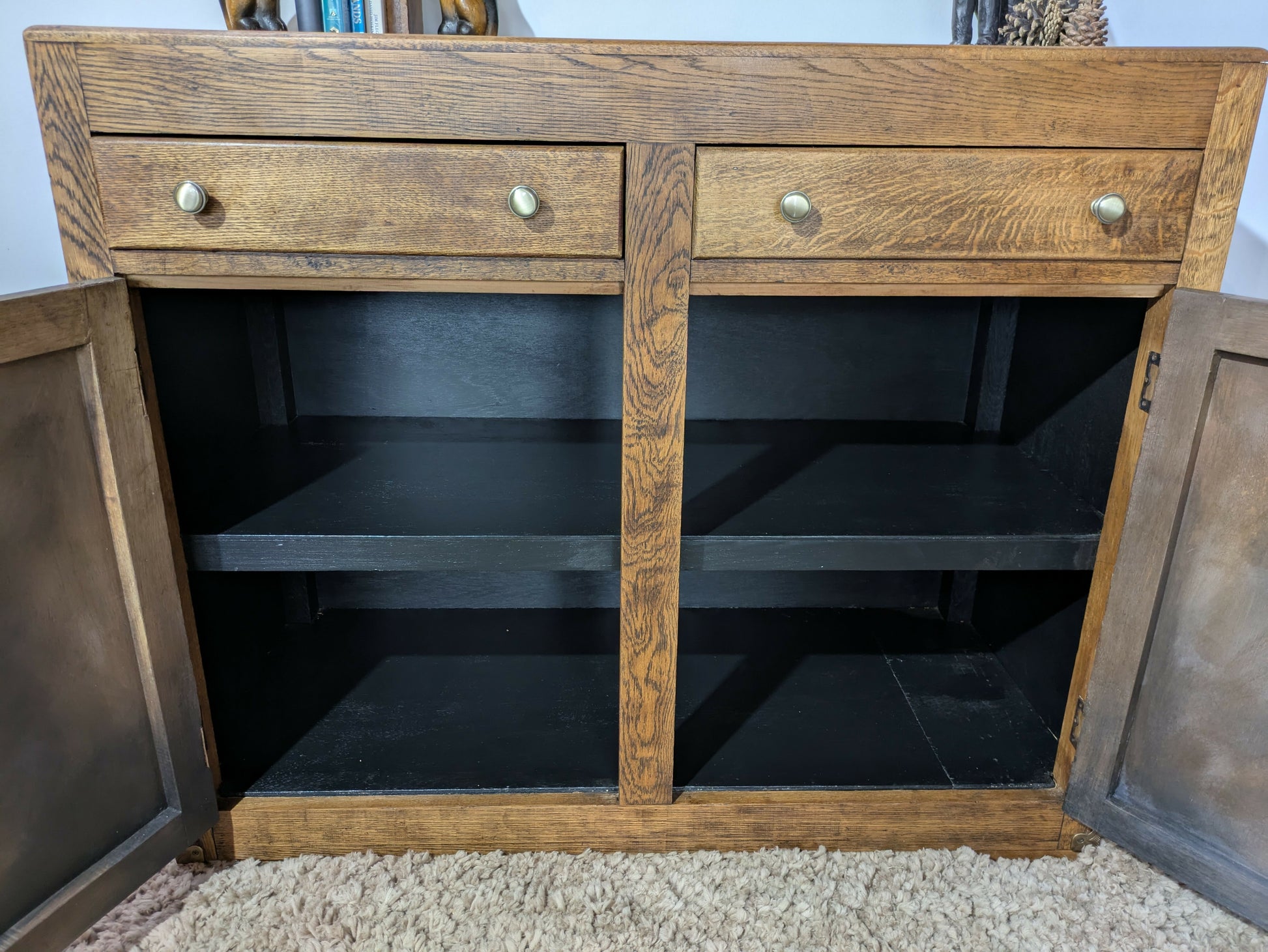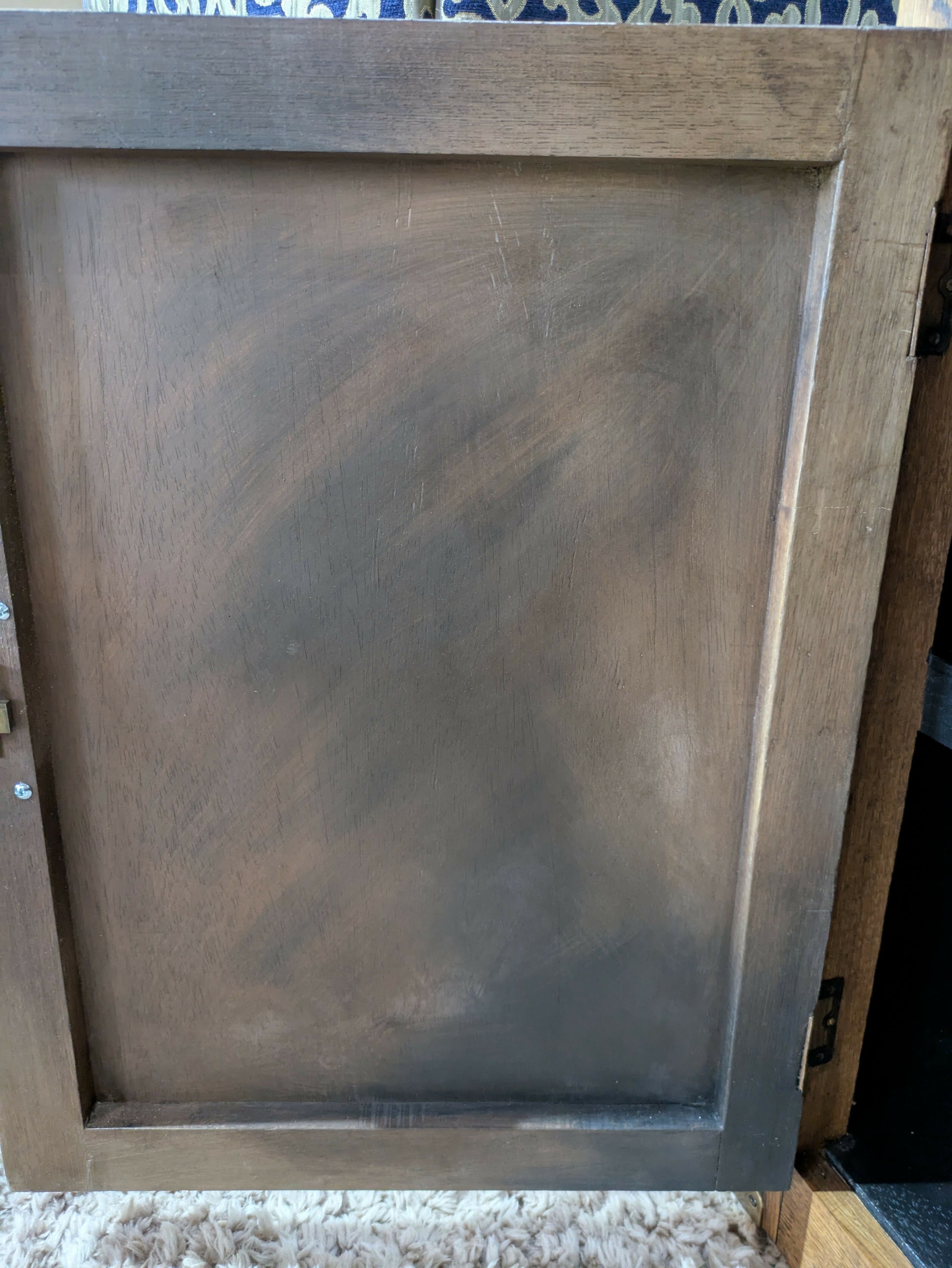 Hand-Painted Vintage Cupboard in Annie Sloan Black and Hornfleur | Decoupage Detail and Brass Hardware