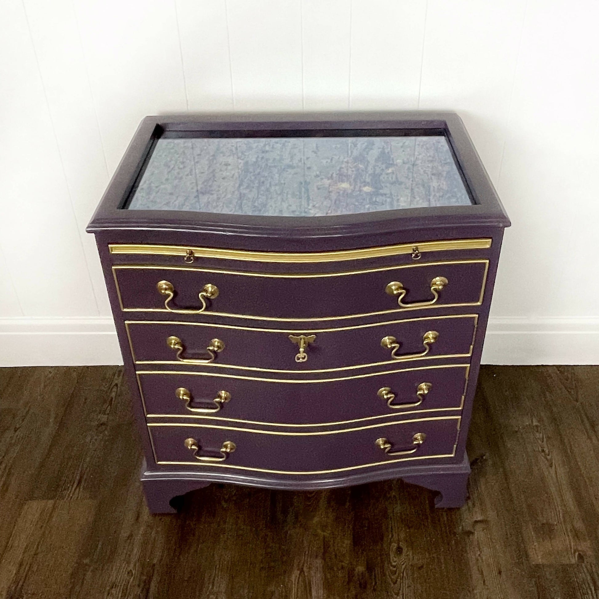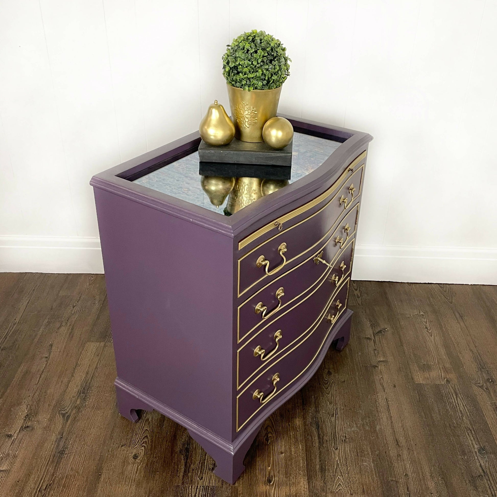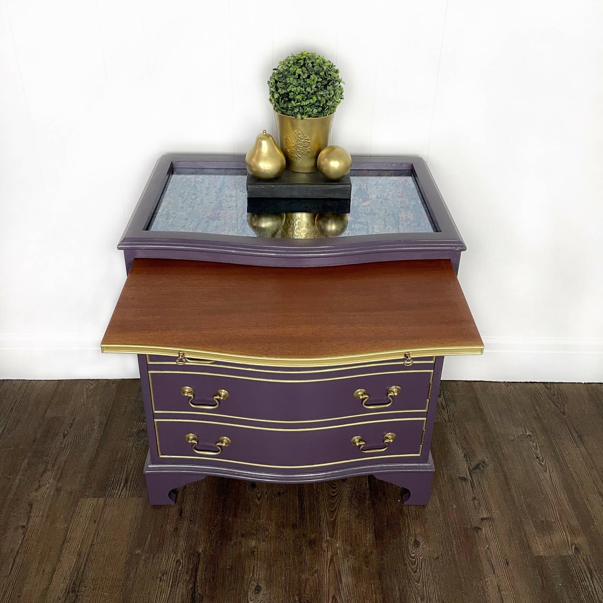 J Sydney Smith Bow Fronted Purple Drinks Cabinet with glass top