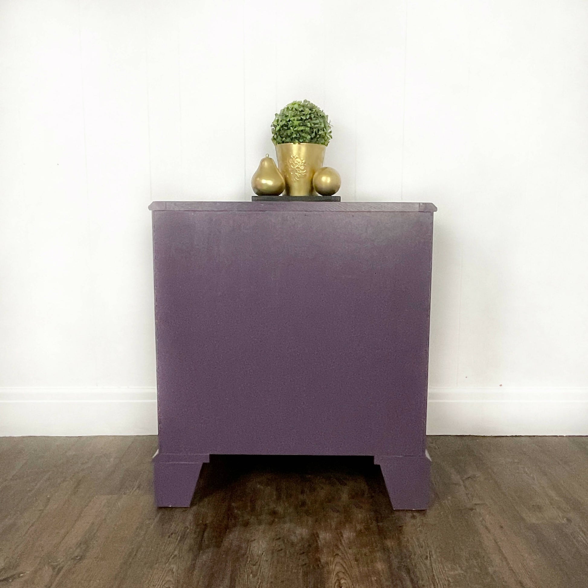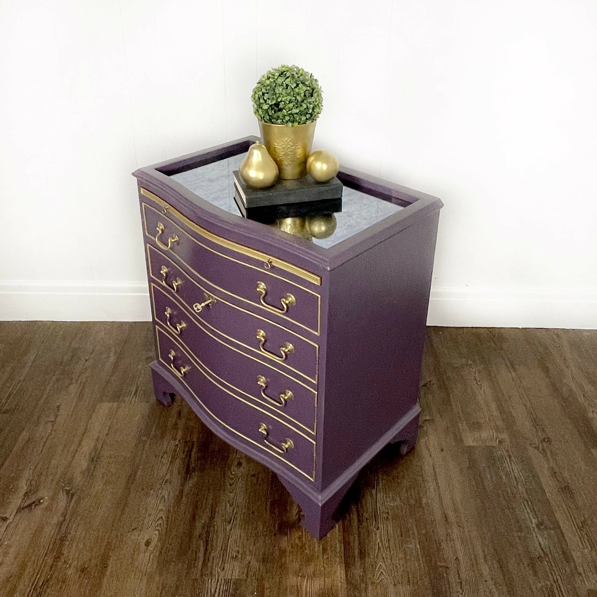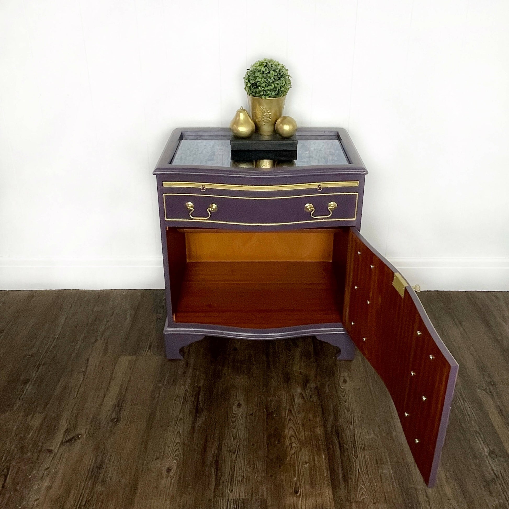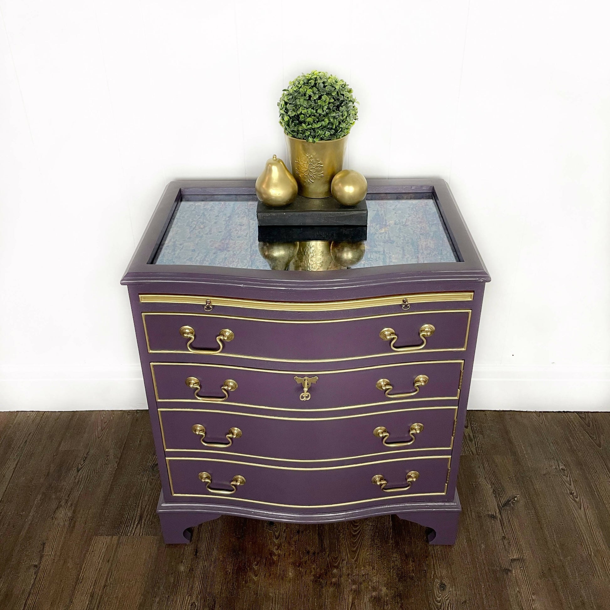 J Sydney Smith Bow Fronted Purple Drinks Cabinet with glass top