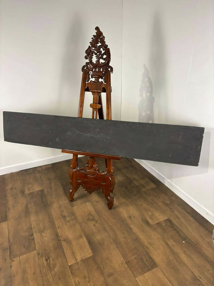 Large Hand Carved Wooden Panel Depicting Figures In A Forest