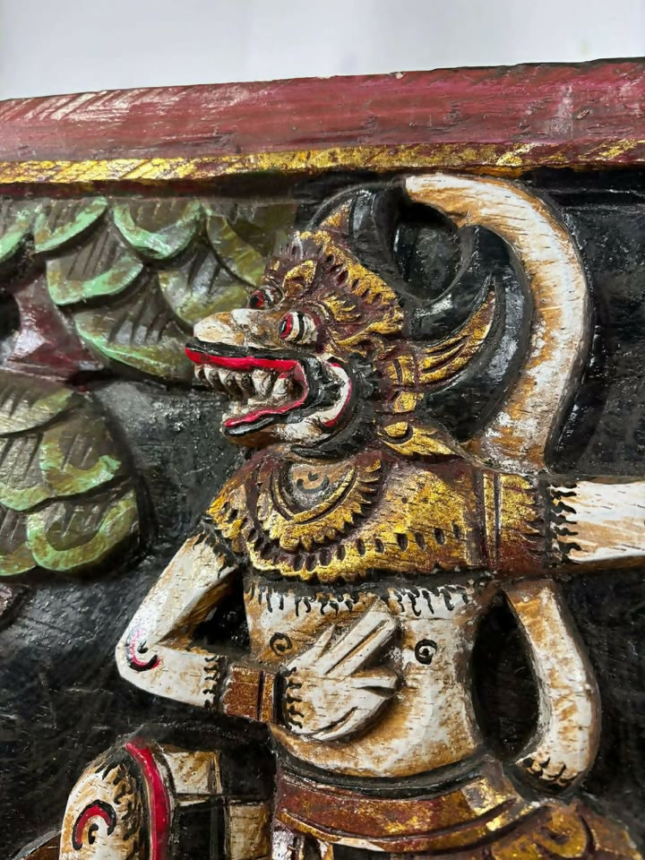 The style of carving and painting is typical of decorative or architectural elements, often found in antique markets.