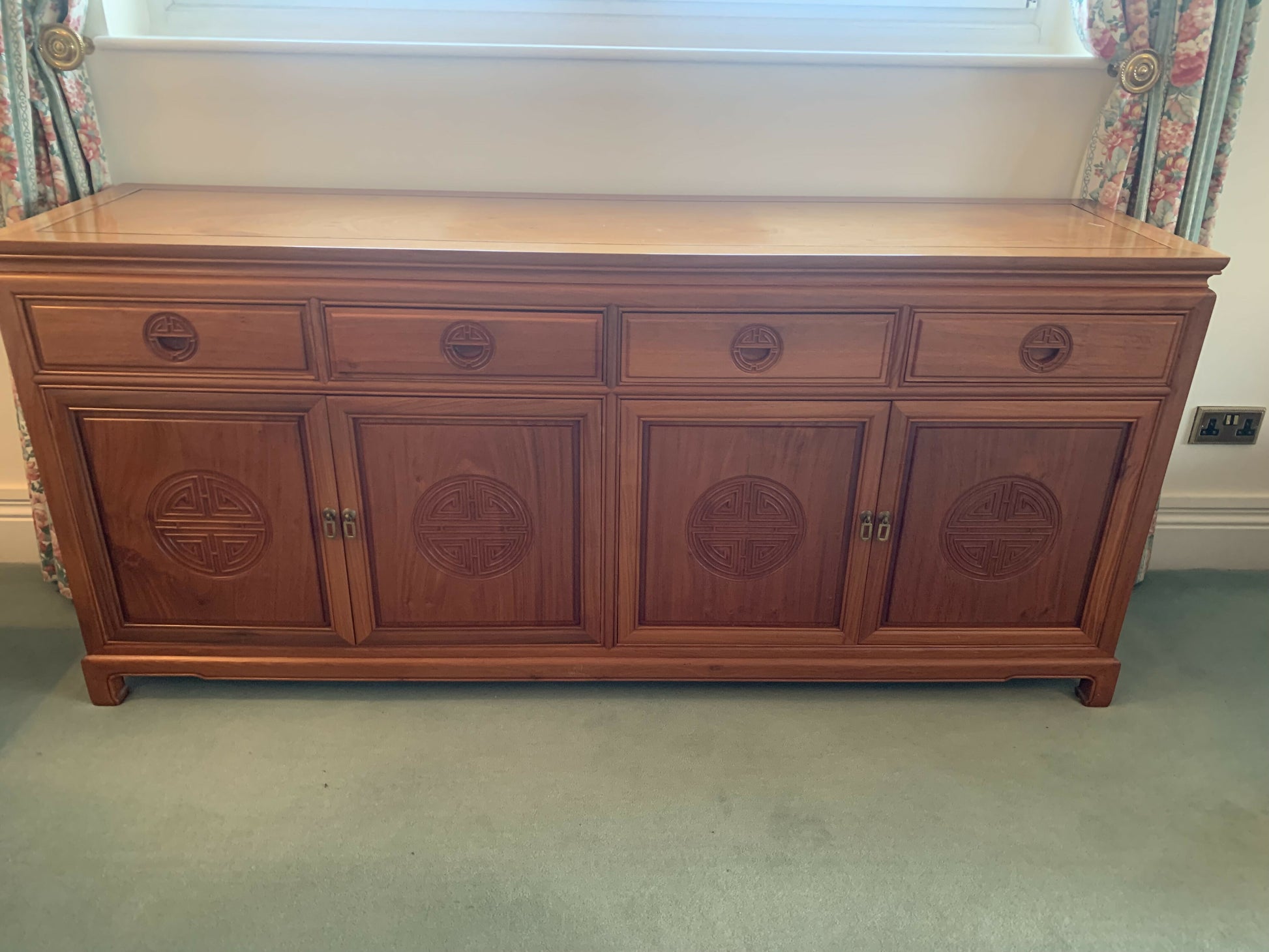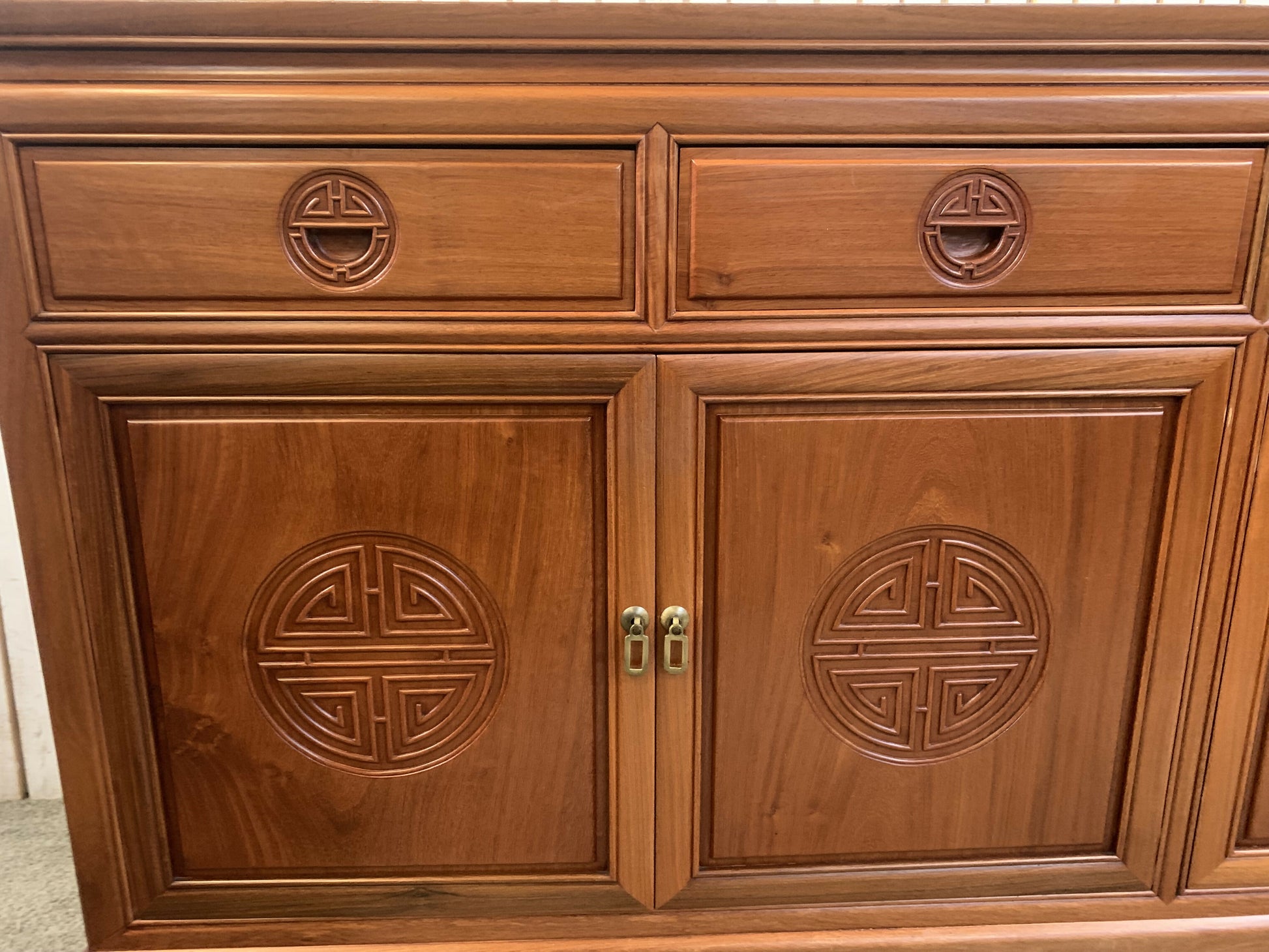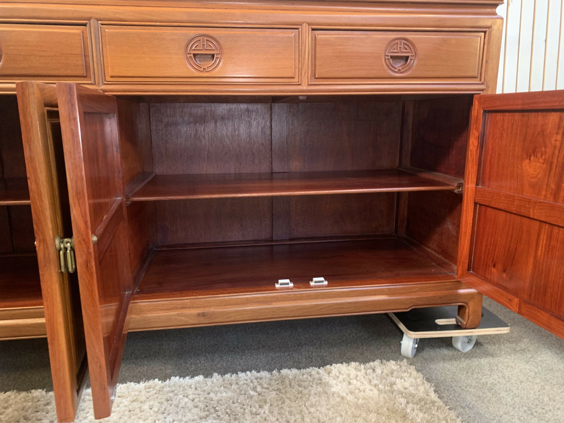 LARGE VINTAGE ORIENTAL CHINESE CARVED SOLID HARDWOOD SIDEBOARD