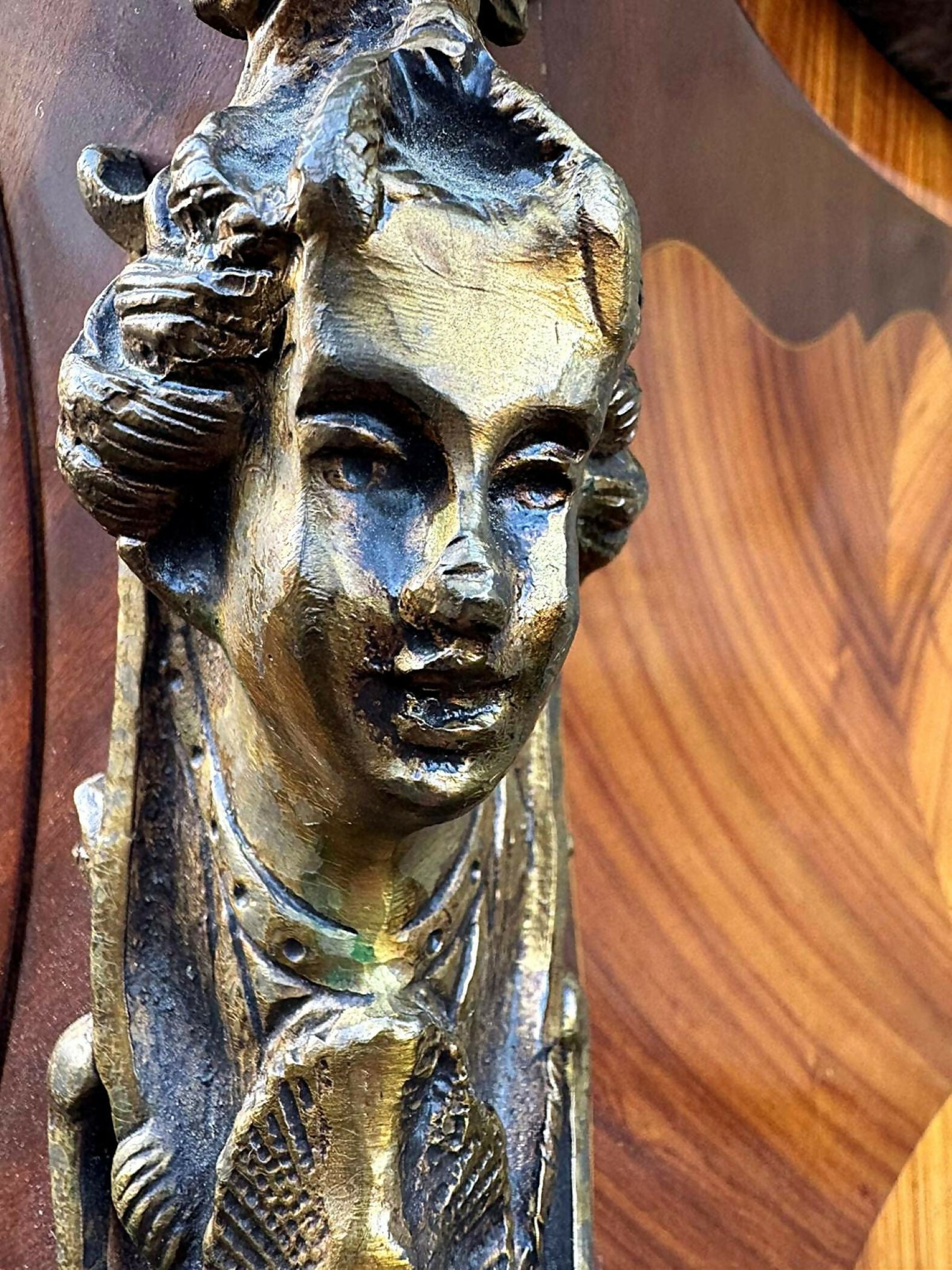 Louis XV Style French Walnut and Marquetry Inlaid Marble Top Commode