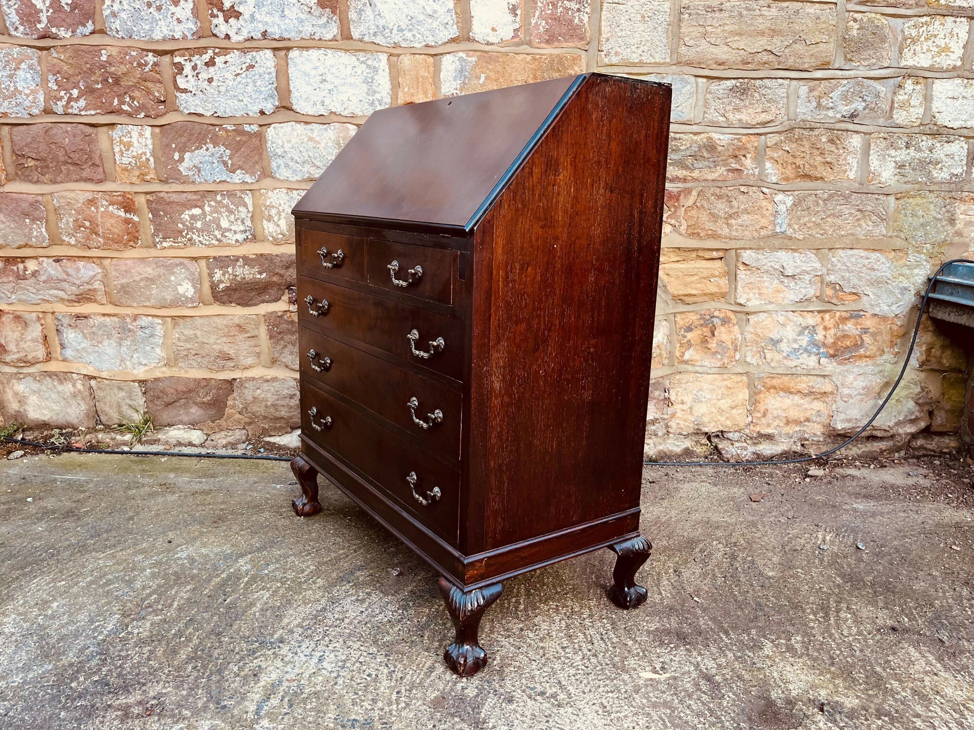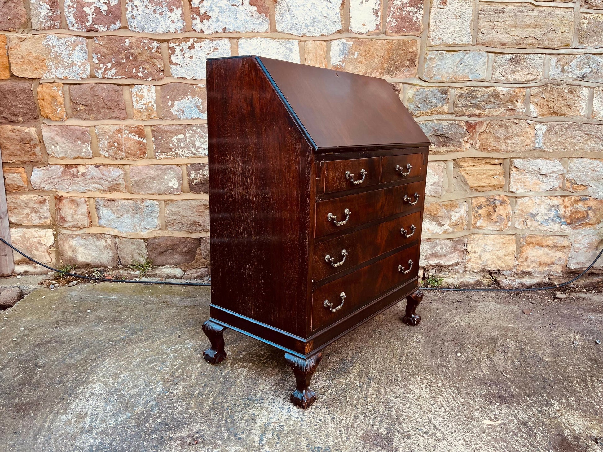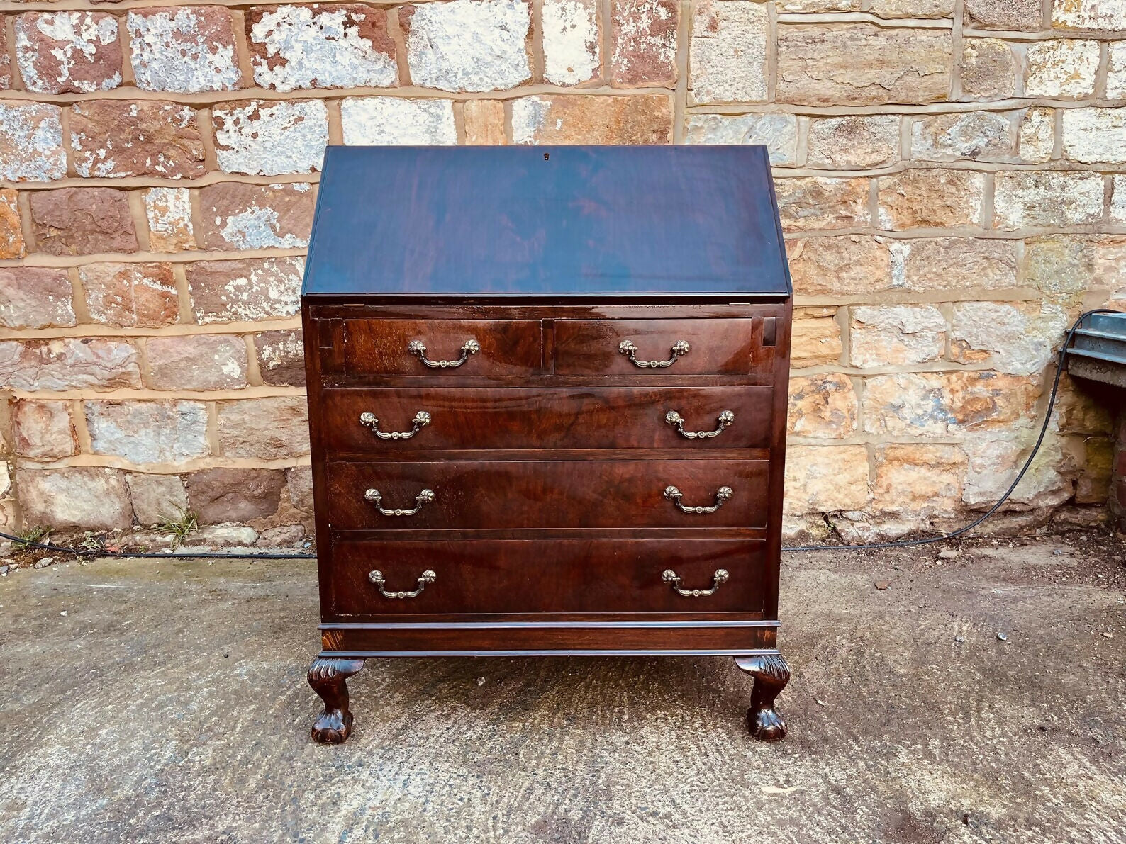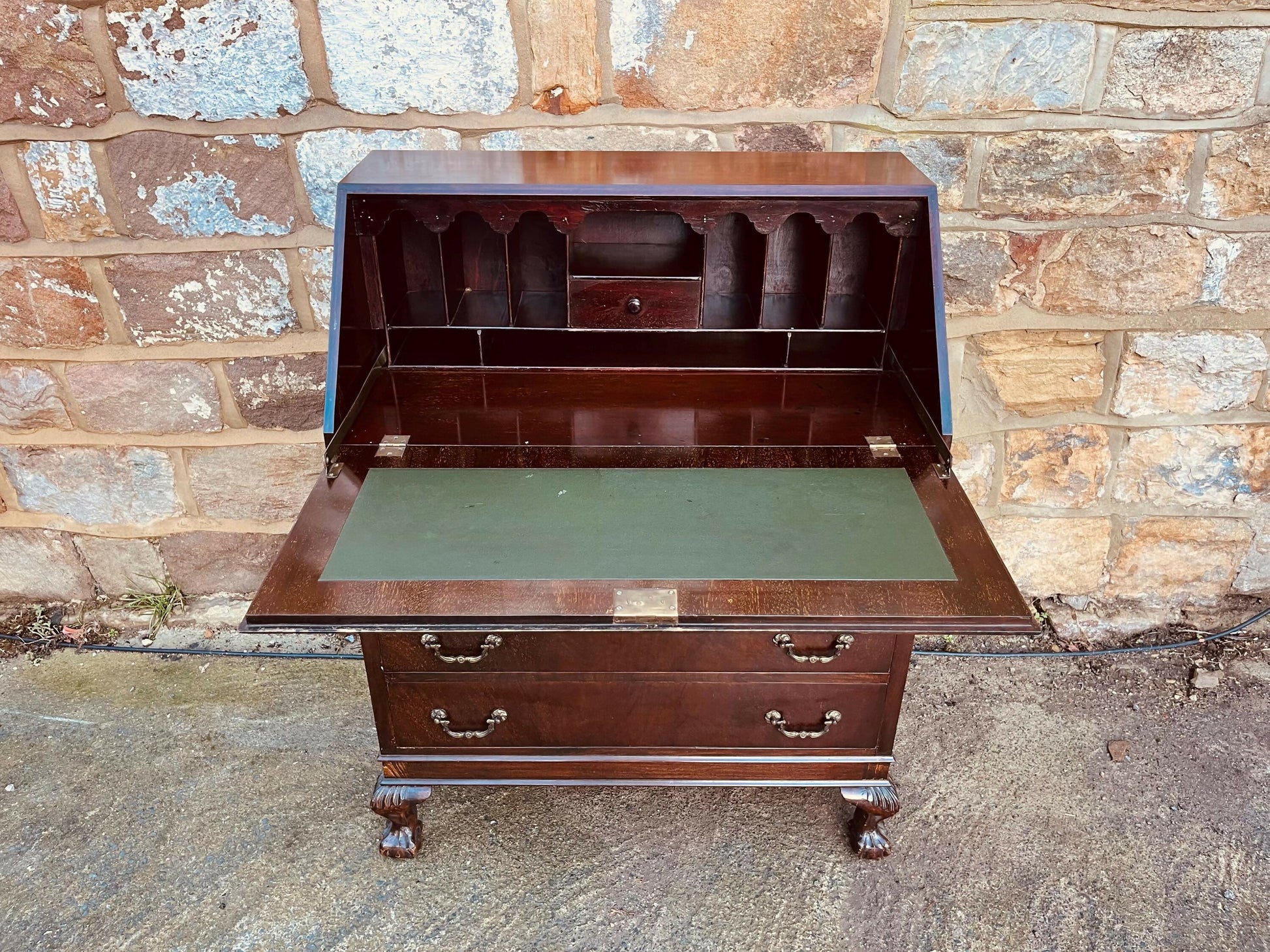 Mahogany Bureau Writing Desk – Ball & Claw Feet, Drop Front, Vintage Secretary Desk, Home Office Storage, Green Leather Writing Surface