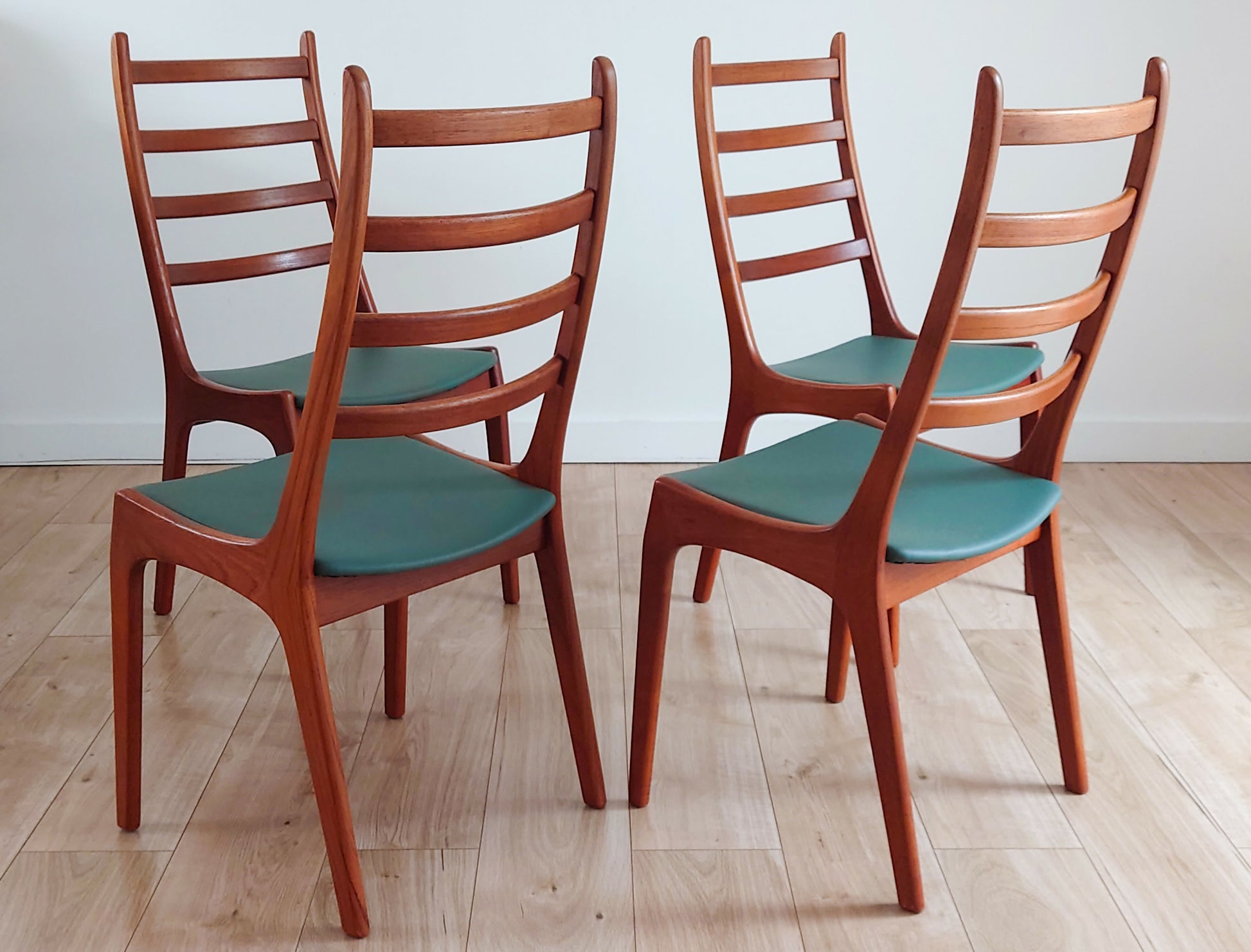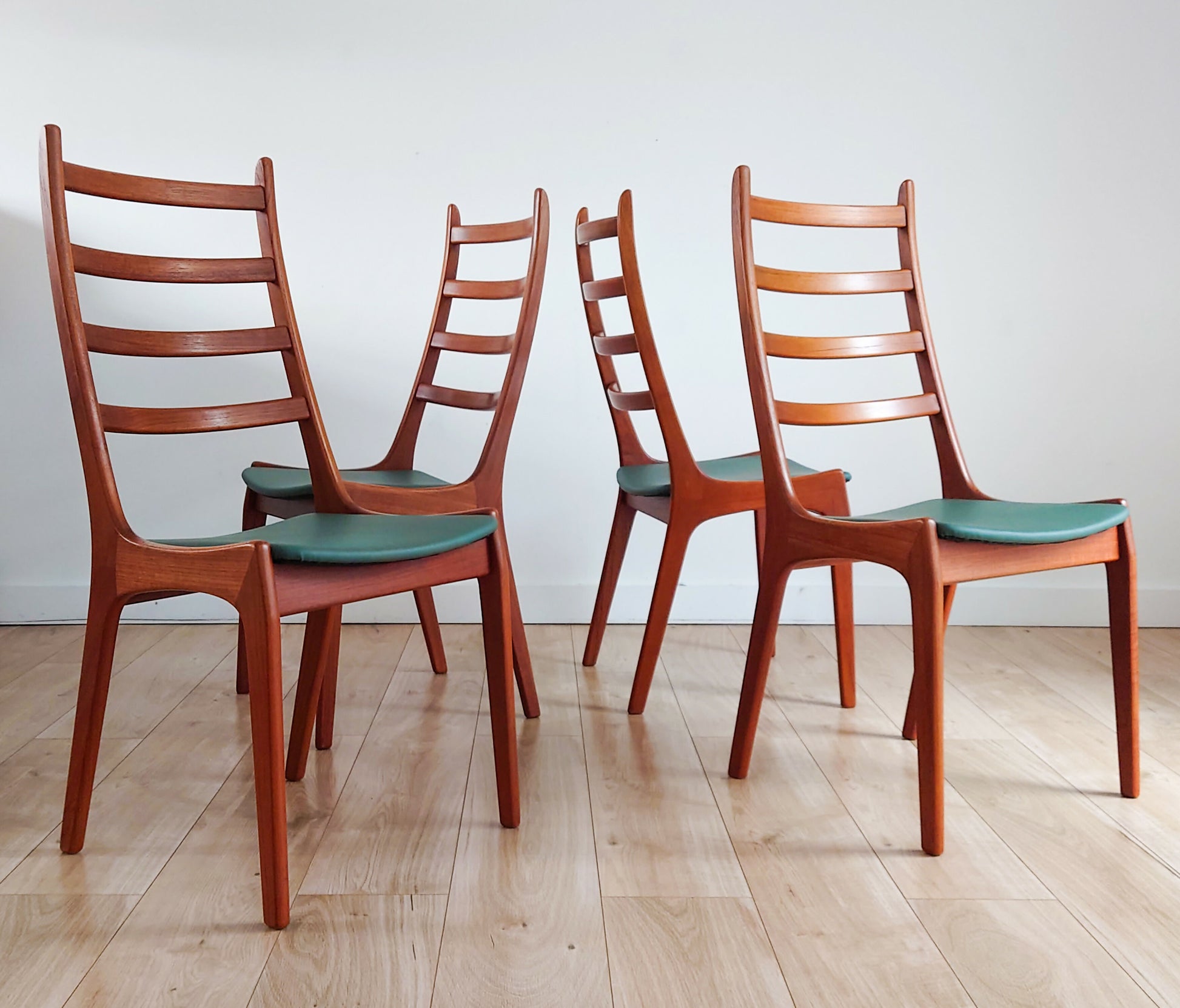 Mid century leather Danish dining chairs by Kai Kristiansen set of 4