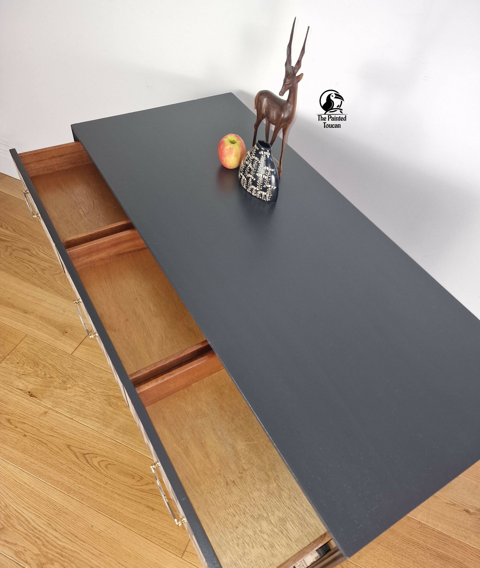 Freshly painted furniture can take up to 28 days to harden. We advise you during this period to take extra care. The paint used on this piece is waterproof, however, it is still recommended to use coasters and dusting should only be done with a slightly damp lint-free cloth. Any chemicals should be avoided.