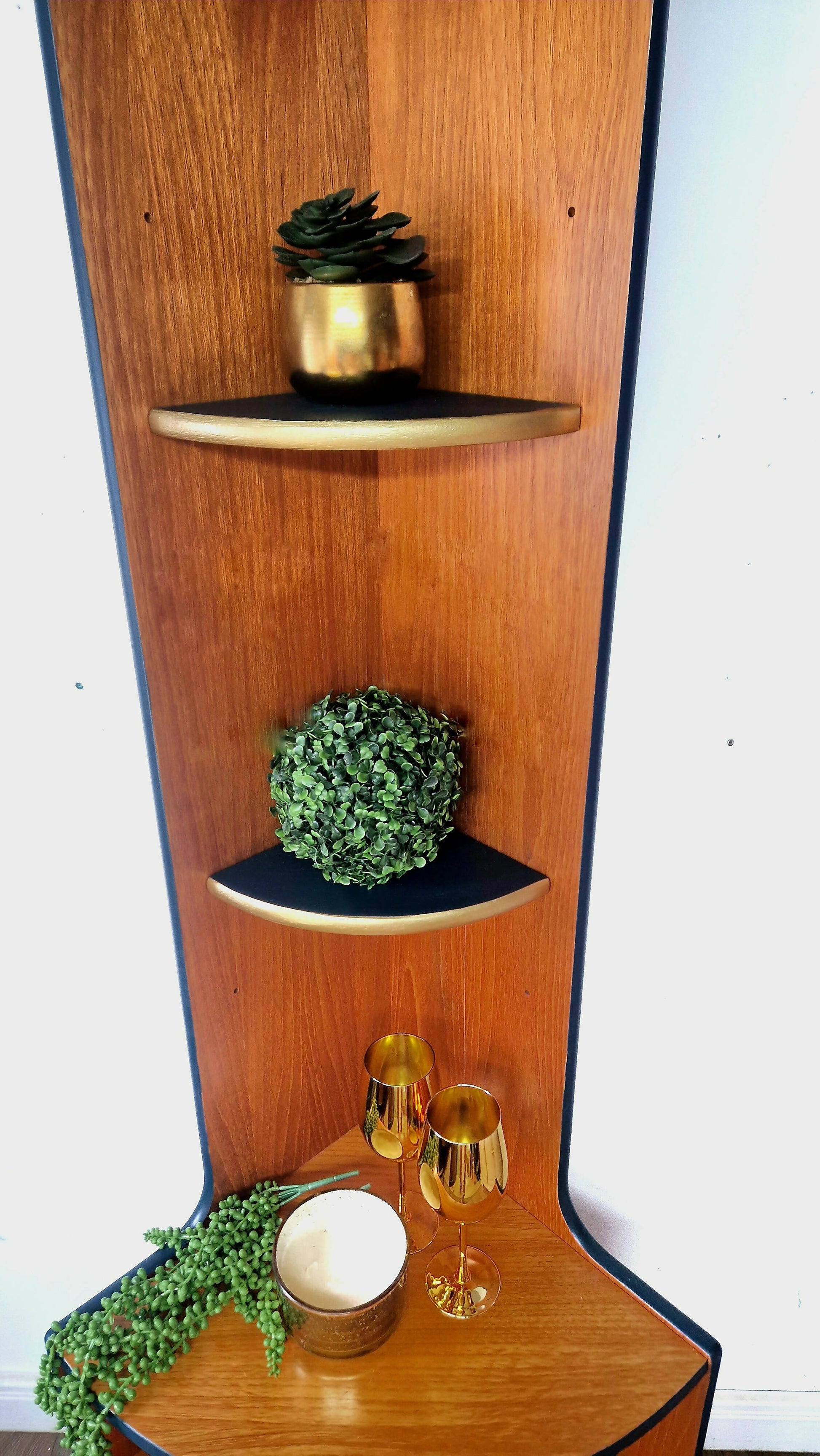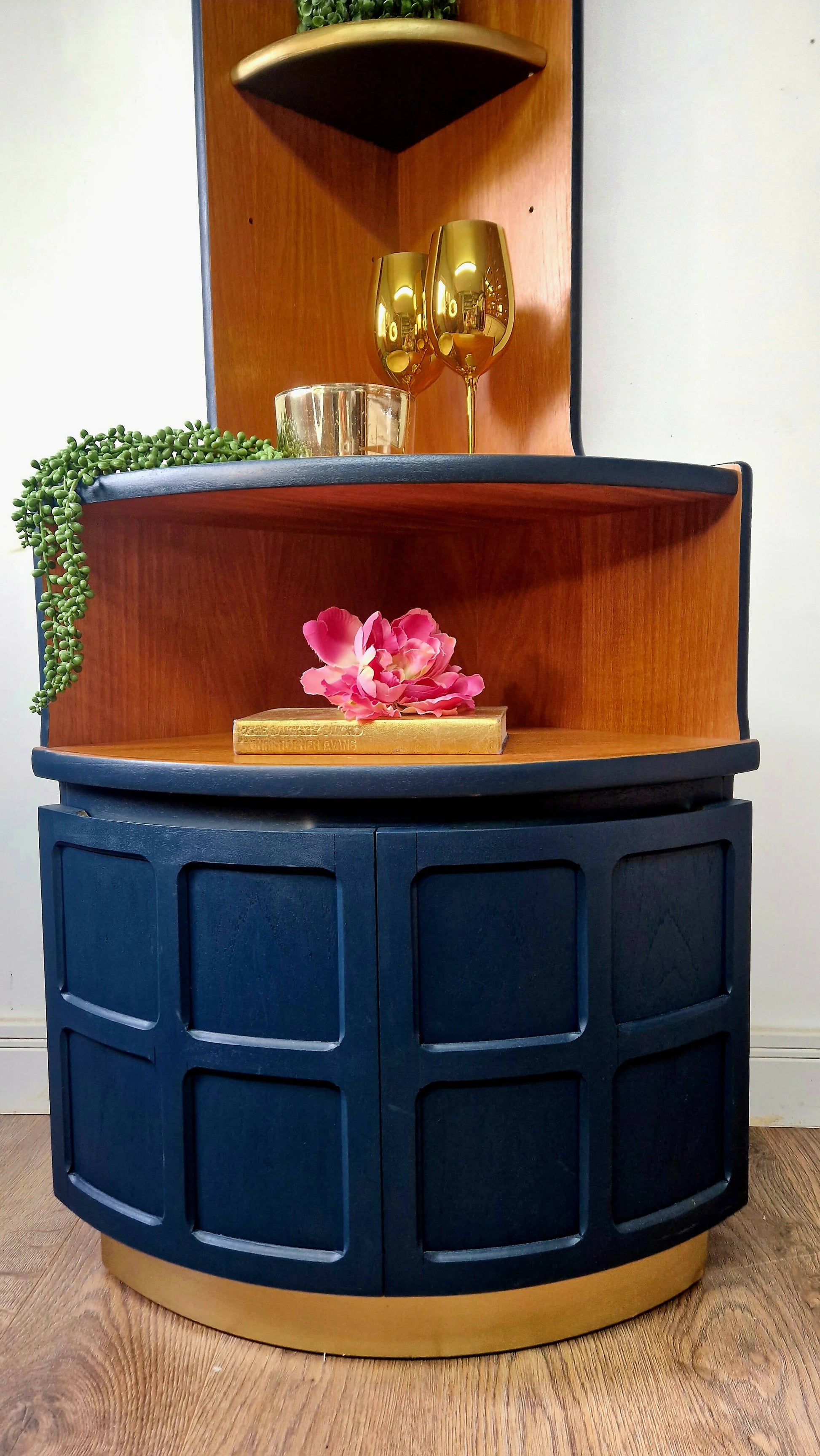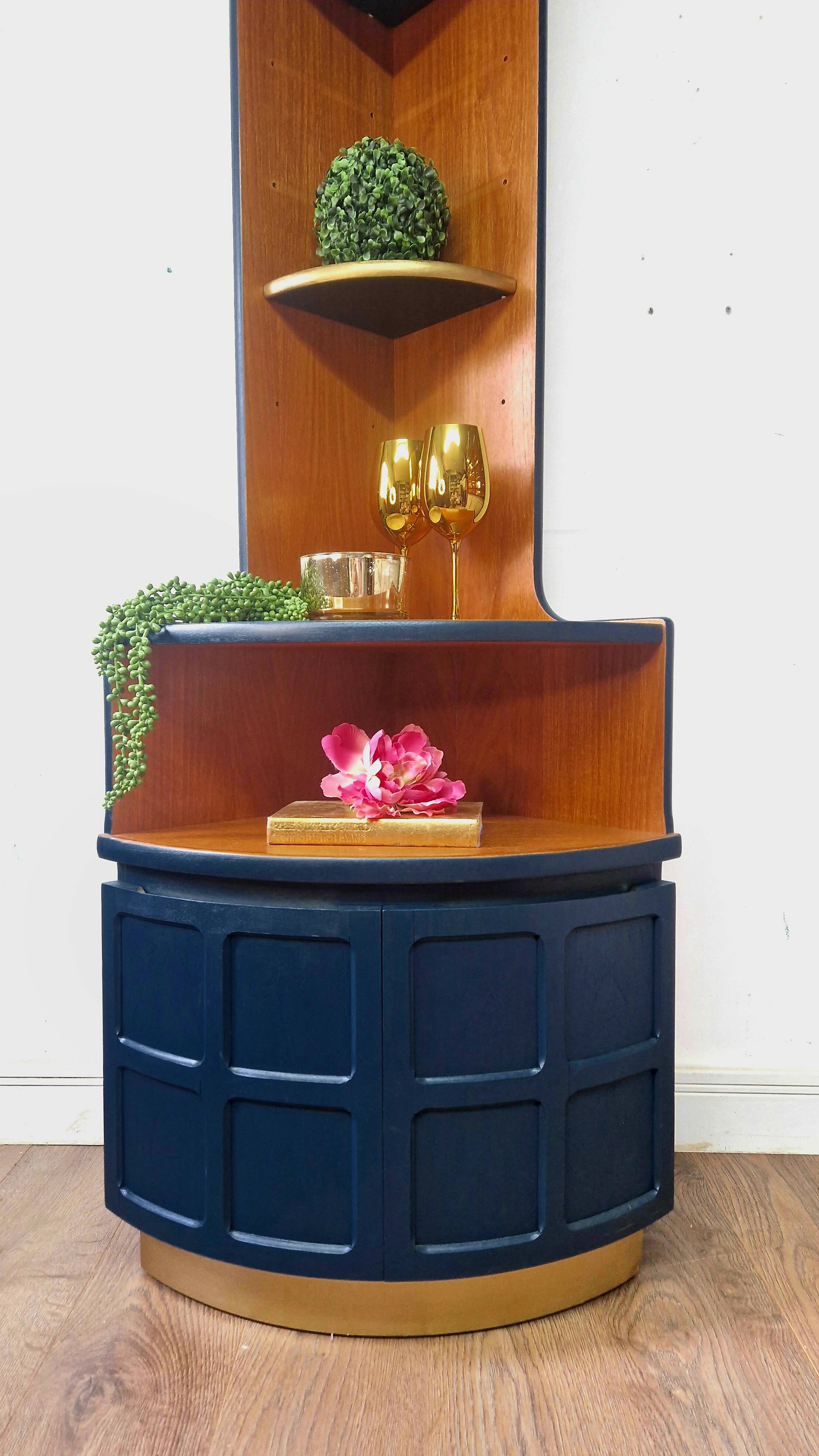 Mid century modern Nathan corner unit, drinks cabinet in blue