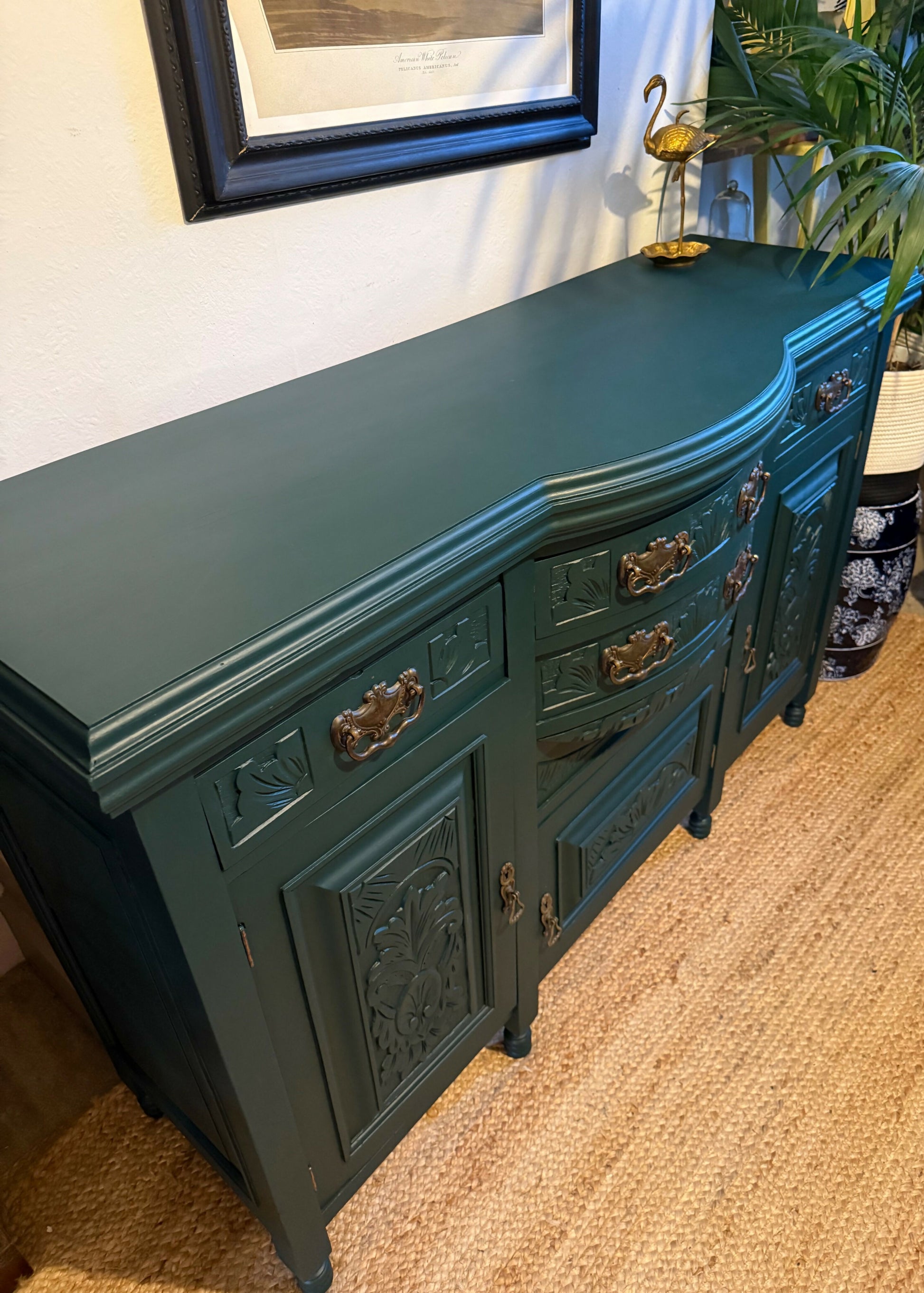 Newly refurbished antique sideboard solid oak green Edwardian