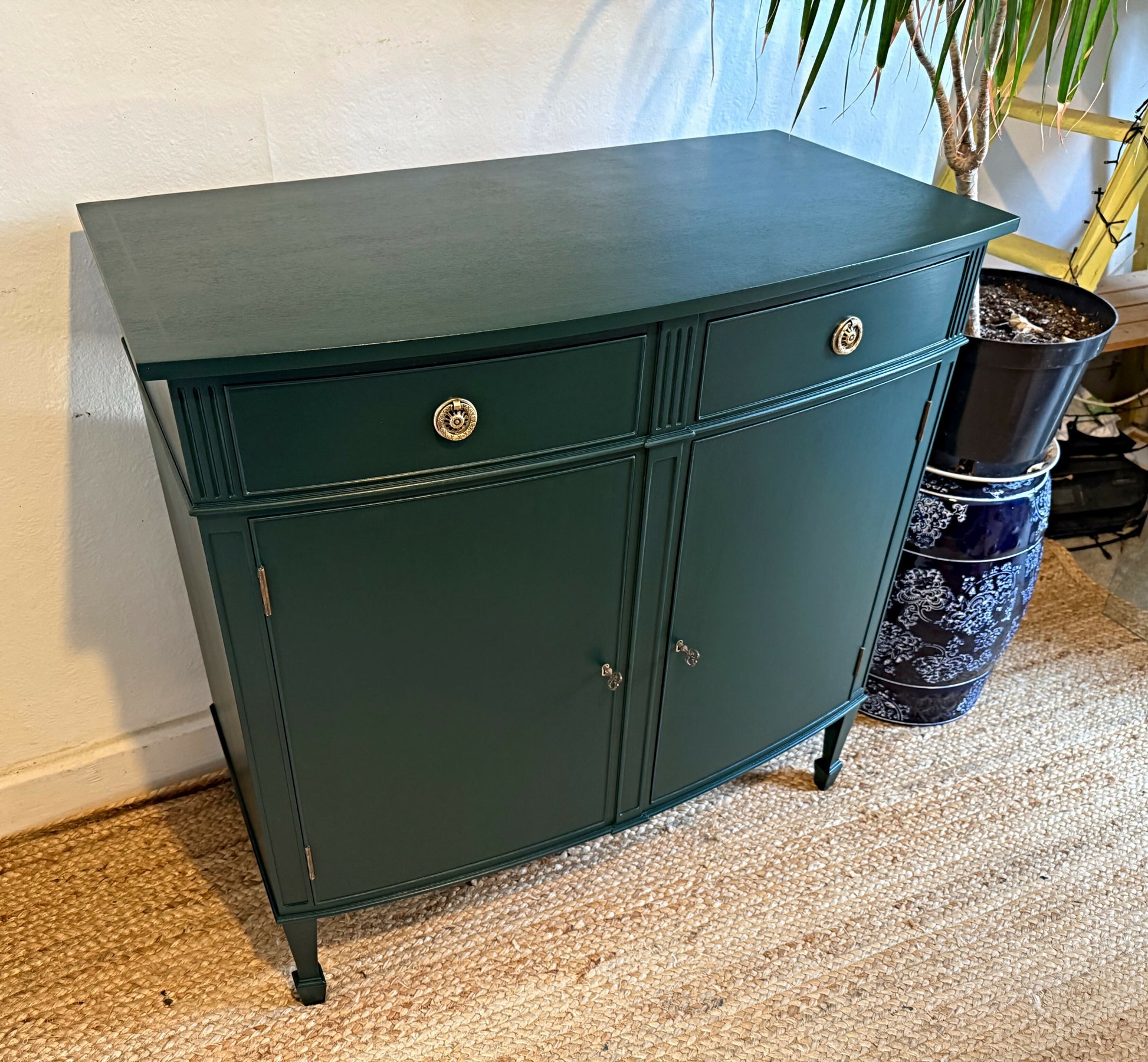 Newly refurbished bow fronted sideboard solid Wood Green antique vintage