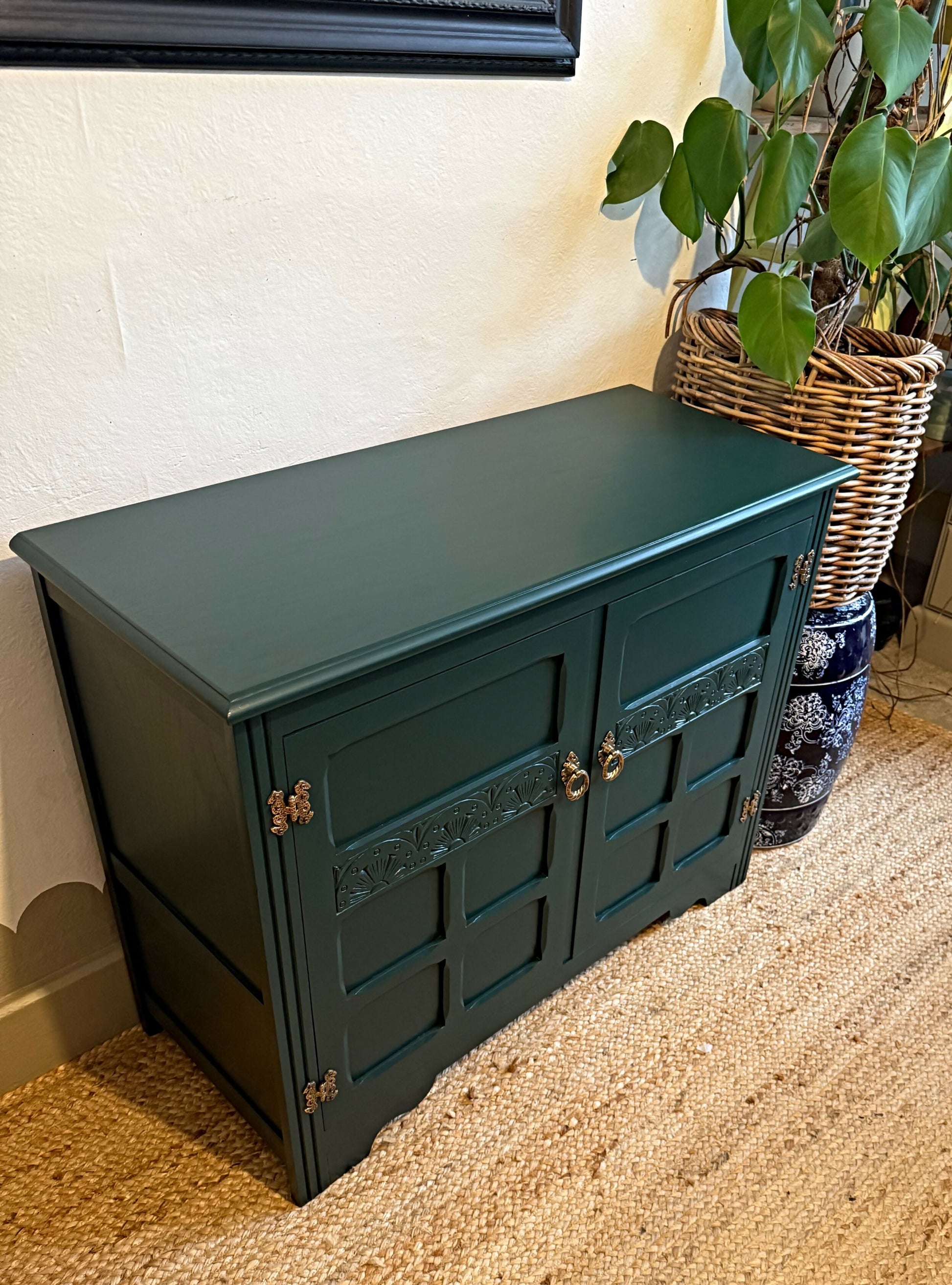 Newly refurbished small solid wood sideboard green